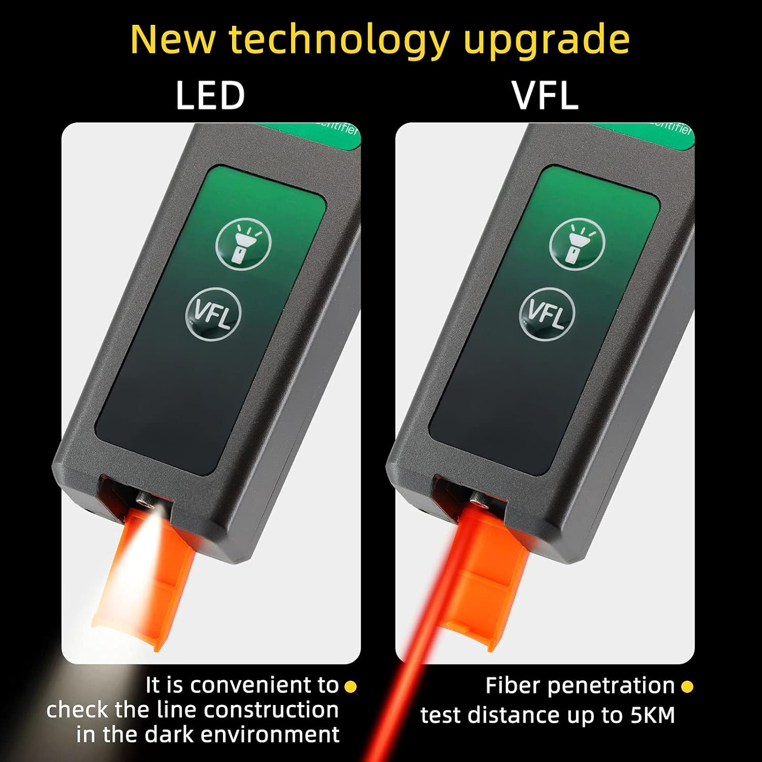 Specification: Wavelength Range: 900nm to 1650nm ldentify signal frequency: 270Hz/ 1KHz/ 2KHz Adapter Type: Used for 0.25 (bare fiber), 0.9, 2.0, 3.0 universal socket for cables Signal Direction: Left & right LED lights Sensitivity range: +10dBm to -50dBm Signal Frequency: 270Hz/1KHz/2KHz Power: AA battery x 2 (NOT included) Operating Temperature: -10 to 60 Storage Temperature: -25 to 70 Package List: 1 x Optical Fiber Identifier 1 x Packing Bag 1 x User Manual