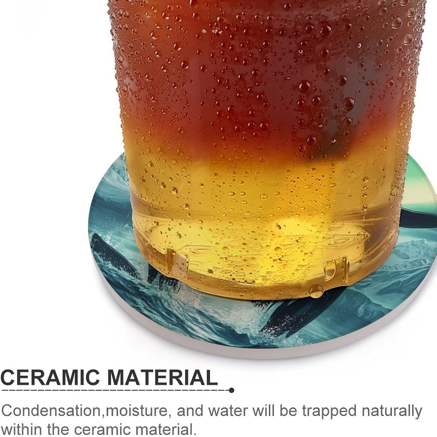 Cute Printed Round Drinks Absorbent Ceramic Coaster with Cork Base Suitable for Kinds of Mugs, Cups, Prevent Tabletop Wear And Scratches, and is Easy to Clean