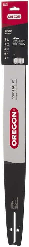 Oregon versacut guide bars are completely re-designed professional light-weight guide bars that are lighter, stronger and longer lasting than standard guide bars. Versacut guide bars are standard-kerf bars that feature a large radius nose and are designed for use in a wide range of professional applications. The new UV paint process prevents paint debris from entering the bar groove and helps maintain accurate gauge creating better fit up and reduced wear from the chain. In addition, the newly designed bearing-grade steel sprocket nose assembly prevents spreading and wear on the nose. The built in debris shield makes this bar more durable in tough environments.