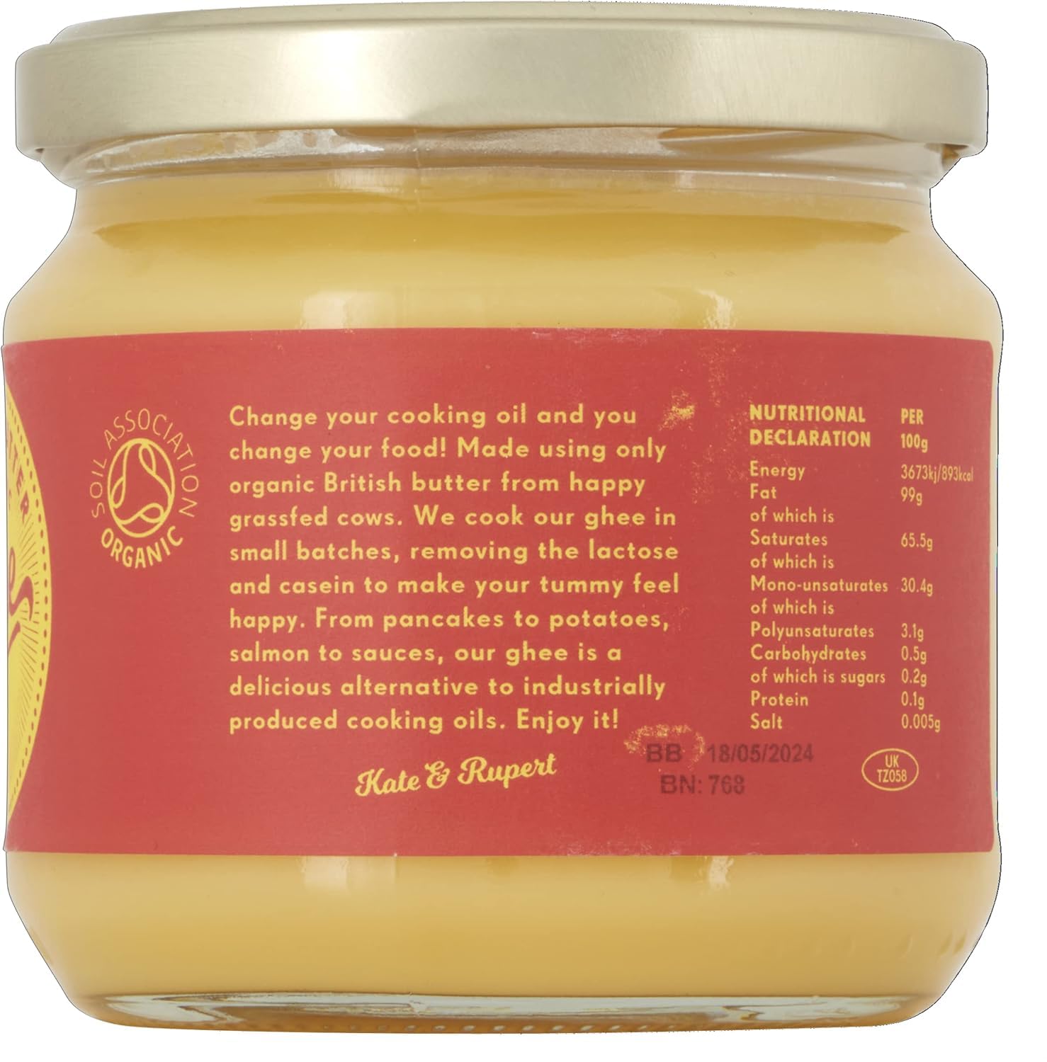 Soil association certified ghee, made in small batches by us to ensure artisan quality. It is made in Devon from organic west country butter. Delicious nutty taste to be used as a healthy alternative to cooking oil in all frying, baking, roasting. A healthy fat that remains stable at high temperatures. Tastes like butter but better. Natural source of vitamins A, D, E and K.