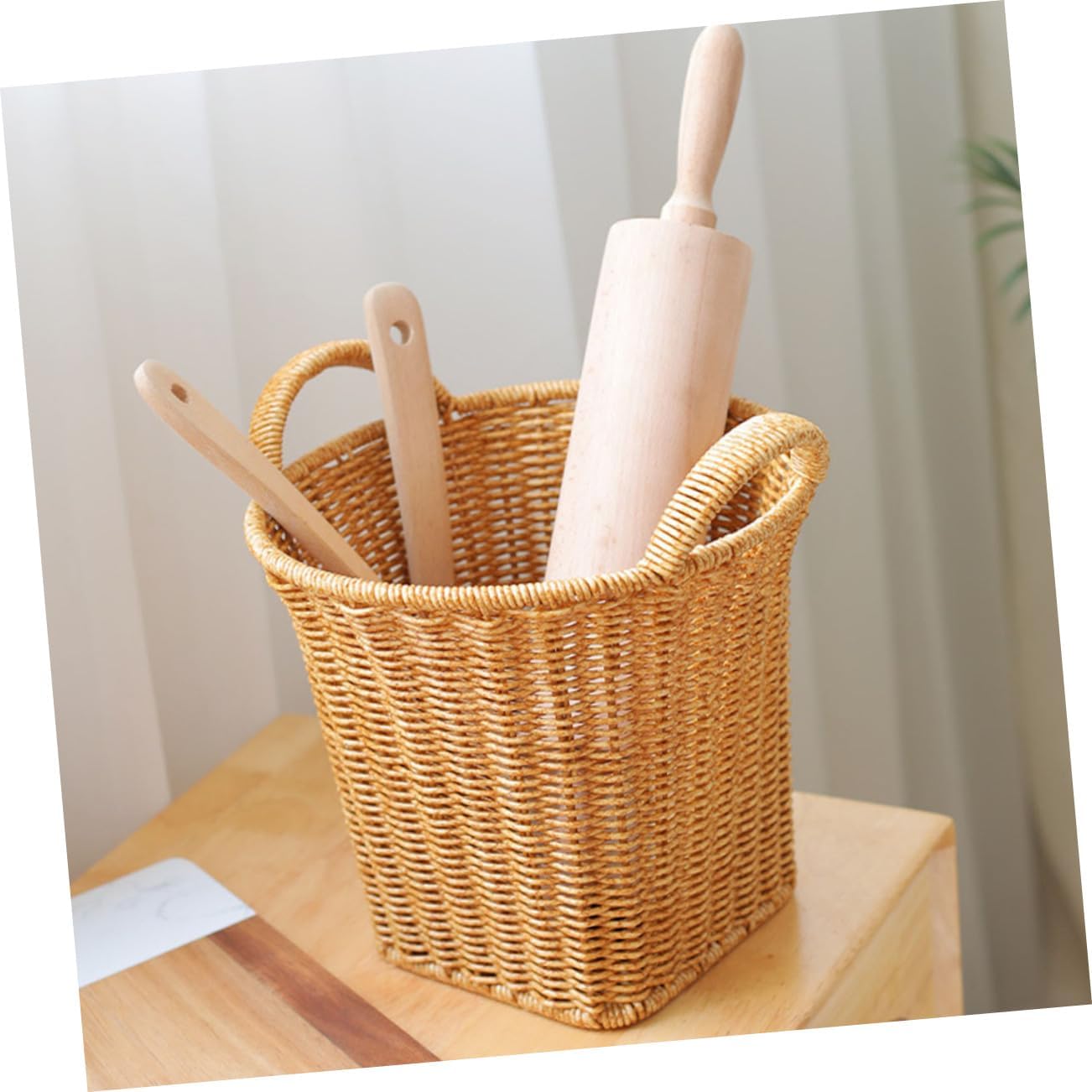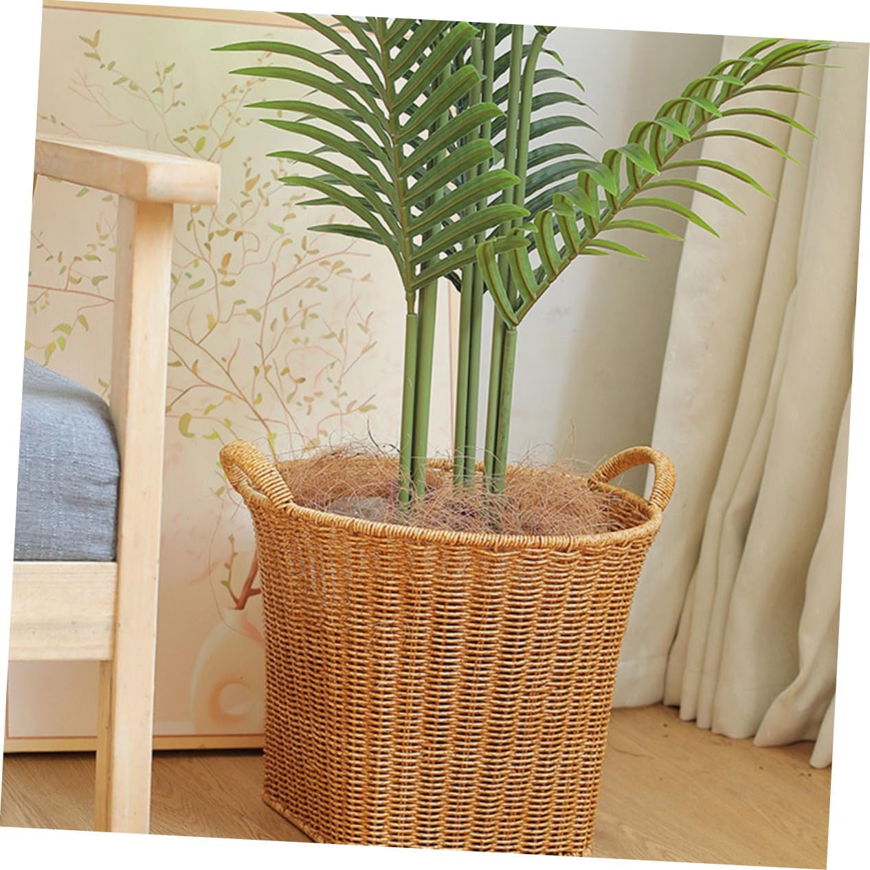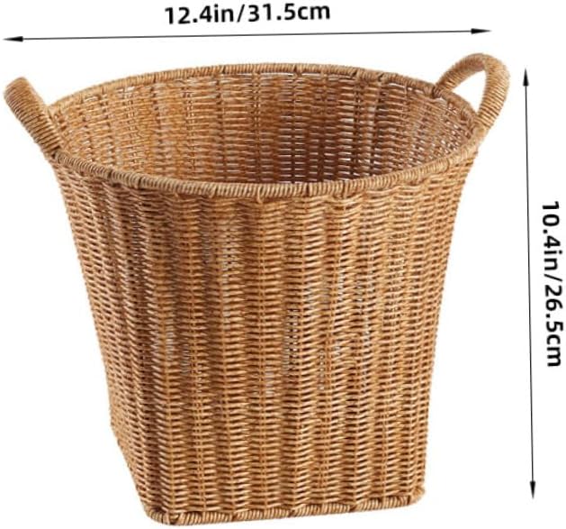 Package List 1 x Basket Characteristics -Color:Brown woven hand-made basket -Material:PE plastic rattan Woven Laundry Basket -Size:31.50X31.50X26.50cm/12.38X12.38X10.41in novelty Flower basket - Lightweight and rustic, so it's convenient to carry this storage basket to where you need Fruit woven Holder. - Manufactured with sturdy material, this storage basket is hard structure and last for years to come Fruit Basket Organizer. - Simple, easy for you to storage. Fine workmanship, smooth surface and appearance kitchen basket. - It helps to keep your things neat and orderly, quickly and efficiently find what you need Flower woven Basket. - Saves you space and time, this Simulation Rattan Basket can bring much help for your life hand woven snacks basket.Goods InformationVegetable woven container And this woven basket is suitable for storing different sundries.storage woven basket Weaving and simple shape, more decorative and attractive, which add a feeling of rustic in the house.serving basket Are you still looking for a weaving storage basket? Reasonable storage, clean and orderly