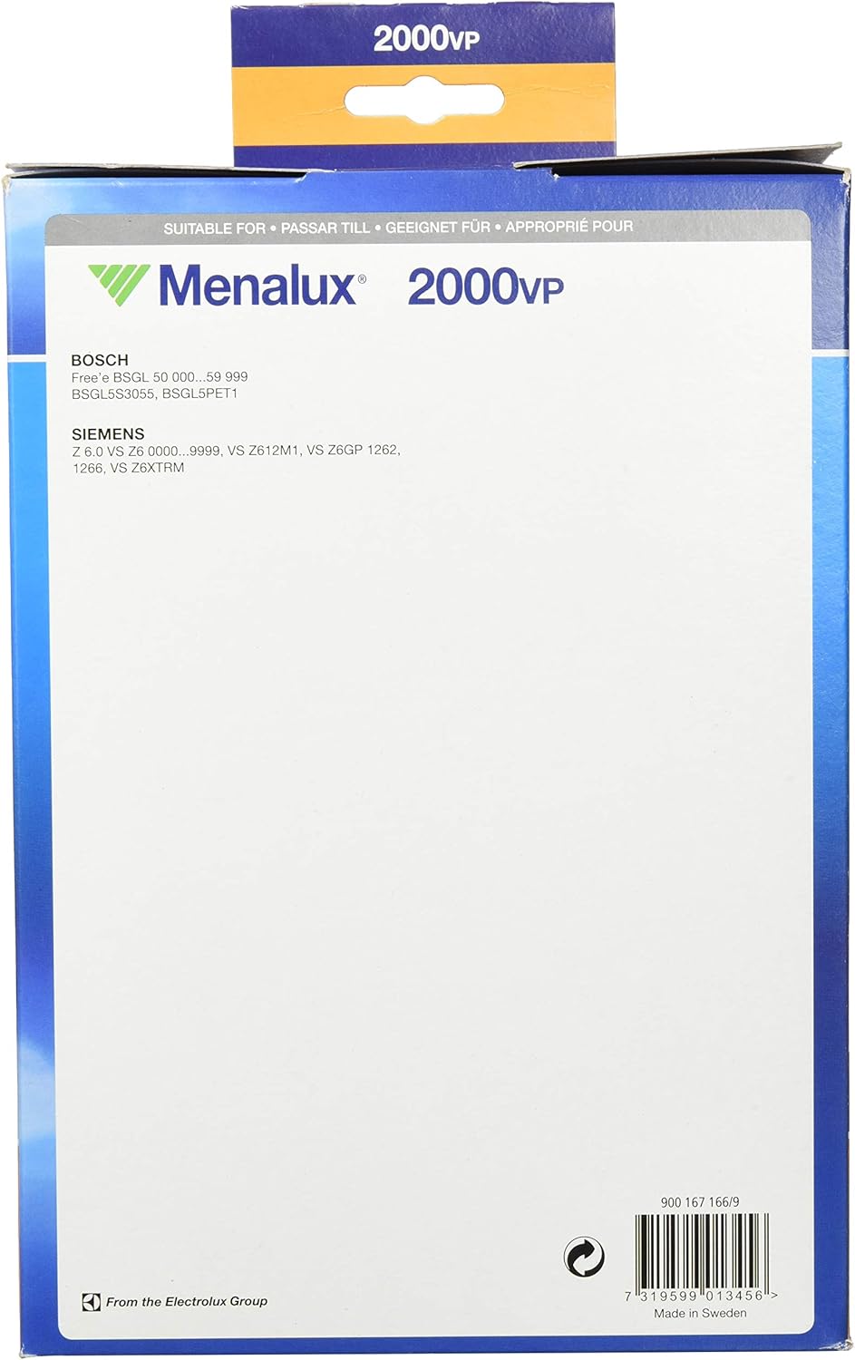 Menalux 2000VP - Value Pack for Bosch and Siemens. Suitable for: Bosh BSGL5 series and Siemens VSZ6 series. Contents: 12 x bags Menalux 2000. 1 x hygiene filter H12. 3 x micro filters.