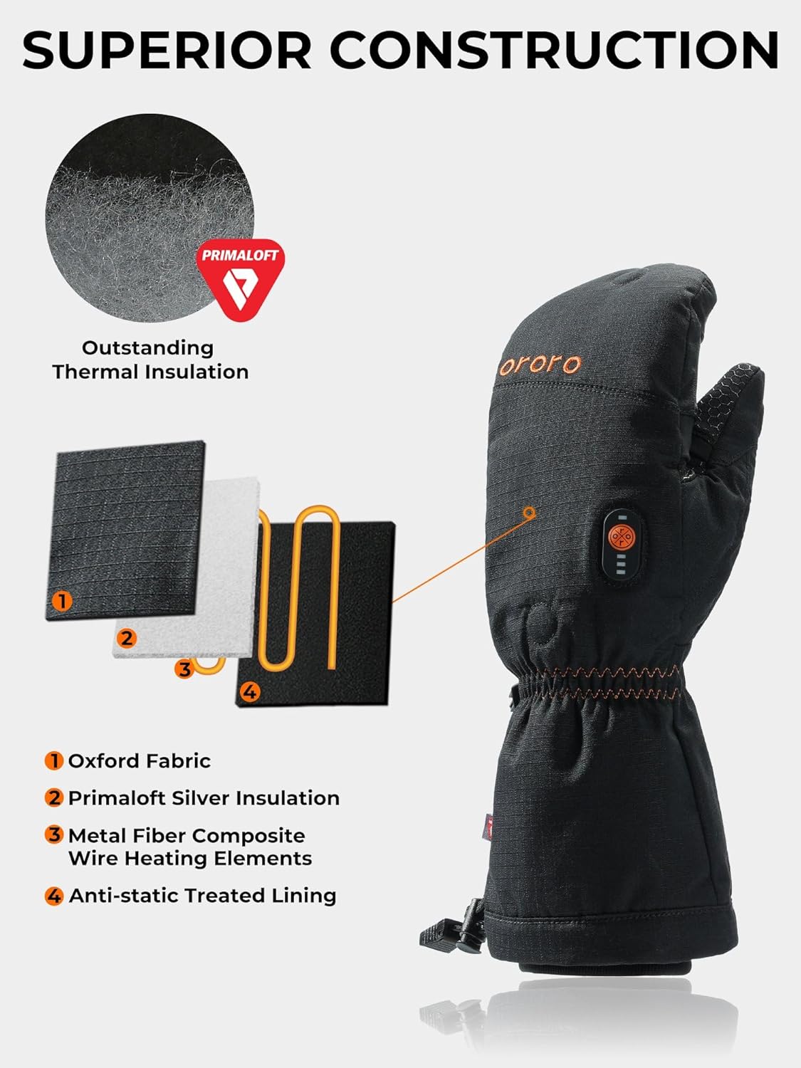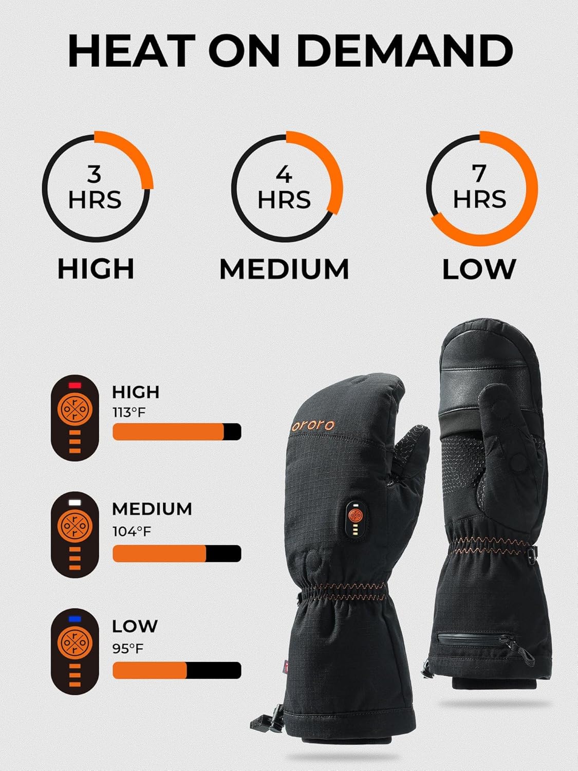 Stay warm without sacrificing finger mobility in cold conditions that demand precision. These heated mittens are designed with a clever flip-top construction, letting you cover your fingers fully when warmth is a priority. The heating elements provide reliable warmth across the backs and fronts of your fingers and the back of your hand. When tasks call for finer control—like fine-tuning a camera or jotting something down—simply fold back the tops for quick access and dexterity.