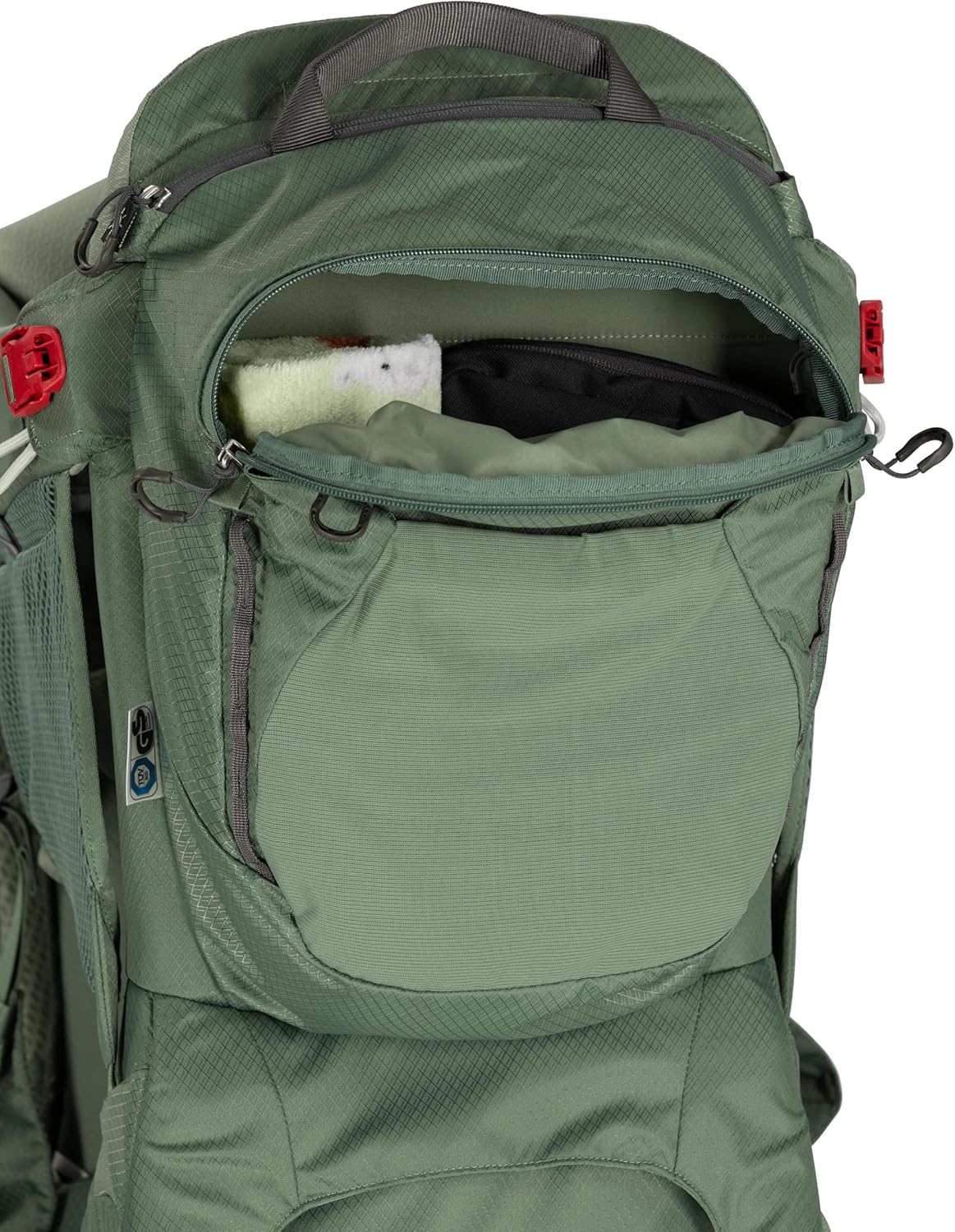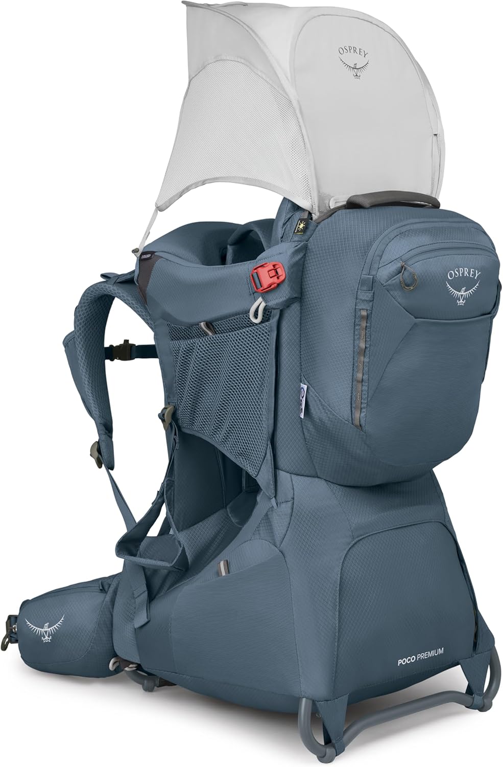 Adventure further with the Osprey Poco Premium, our deluxe toddler and baby carrier designed for families who go beyond the backyard. Outfitted with premium features, including a Fit-on-the-Fly hipbelt, AirSpeed suspension and an easy-to-clean padded cockpit, this carrier ensures your little one is secure and comfortable from trailhead to town. The Double Halo harness with front-facing arm loops makes it easier than ever to load and buckle in your child, while the UPF 50+ sunshade provides essential protection on sunny hikes or urban strolls. With 6 inches of torso length adjustability, this baby backpack carrier fits a range of adult body types, and is perfect for partners or grandparents who want to share the carry. Whether you're browsing the farmers market or exploring new trails, the Poco Premium allows you to see the world side by side. A durable bluesign PRODUCT that’s built to last through every mile of your parenting adventure, Poco Premium is a baby registry essential for active families.