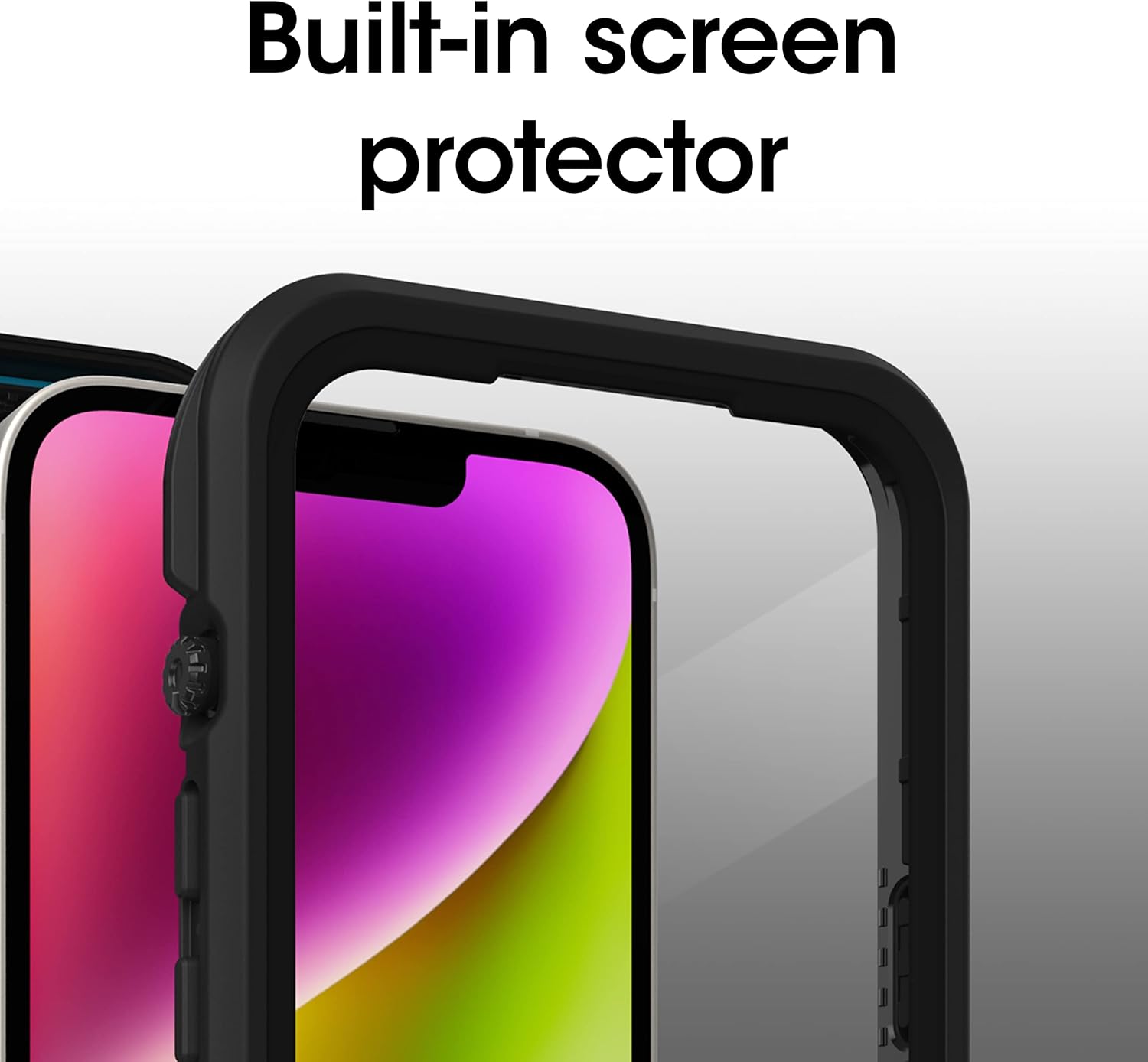 Designed and engineered by LifeProof to keep pace with your pursuits, OtterBox Frē Series waterproof iPhone 14 Plus cover with MagSafe helps lessen your impact. LifeProof FRĒ covers your phone on all sides, keeps up with every activity — and survives hard falls along the way. Plus, it snaps securely to MagSafe accessories.Specifications:Compatible With:iPhone 14 PlusDrop Height:DROP+ | 5X as many drops as military standard (MIL-STD-810G 516.6)Dimensions:6.84 in x 3.66 in x 0.62 in / 173.64 mm x 93.02 mm x 15.68 mmWeight:0.11 lbs | 48.01 gMaterials:Polycarbonate LayerThermoplastic ElastomerThermoset Elastomer plugMagSafeCase Features:WaterProof+ | WaterProof for 2 meters up to 1 hour | IP68Built-in screen protector and port covers for 360 protectionFor MagSafe with built-in magnetsSimplify with OtterBox cases, power and accessories for MagSafeWorks with 5G networksLimited lifetime warranty. Hassle-free replacements for the life of your device.
