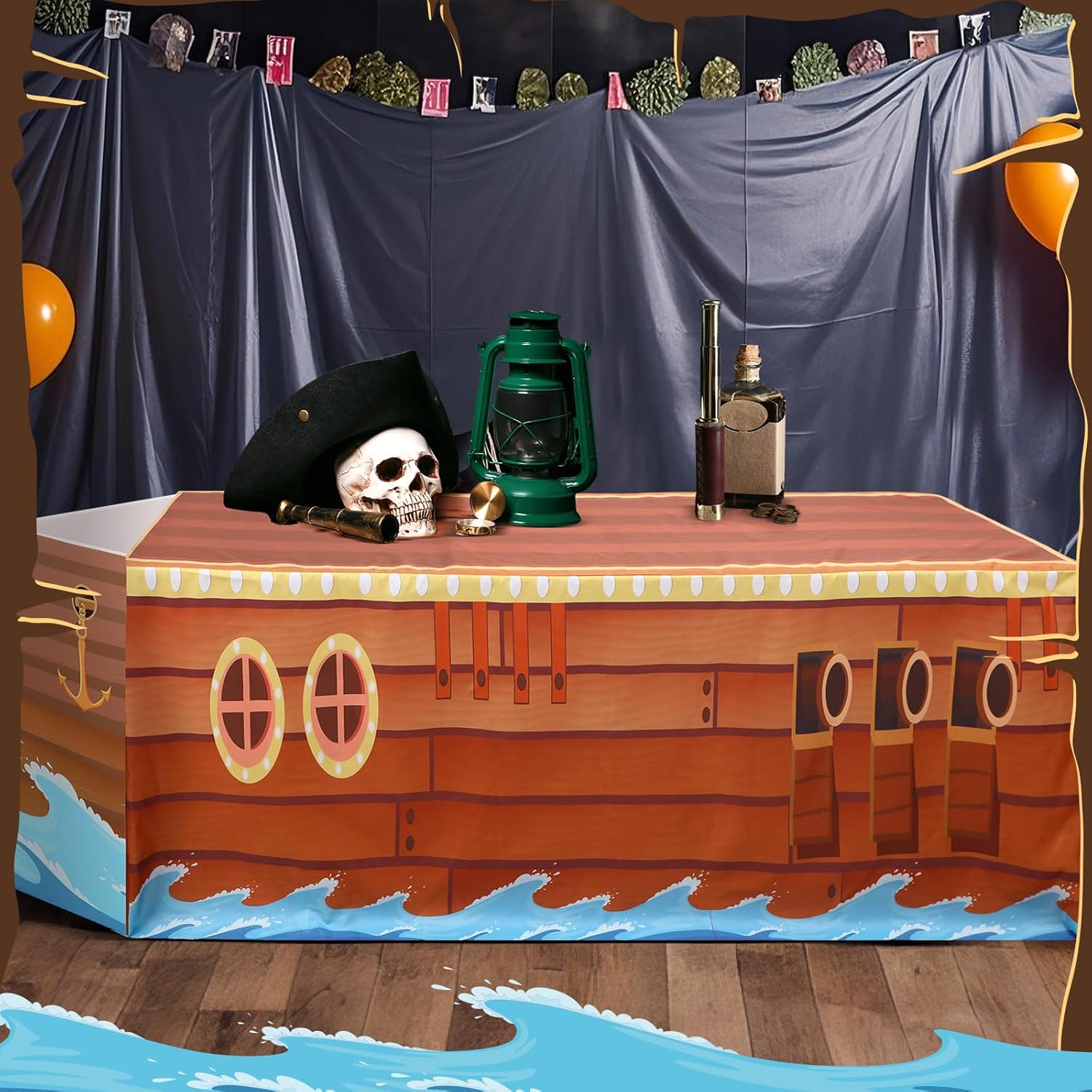Features: Reusable: With its reliable material and sturdy construction, both the tablecloth and the prow cardboard can be reused multiple times. This not only makes it a cost effective choice for your various pirate themed events but also contributes to reducing waste, aligning with an eco - friendly lifestyle. Durable and Stain Resistant: Our pirate tablecloth is not only long - lasting but also highly resistant to stains. Whether it's accidental spills of drinks or food during the party, simply wipe it with a damp cloth, and it will be as clean as new, ensuring it can serve you well for many parties to come. Specifications: Material: Pirate tablecloth: plastic Prow Cardboard: paper Color: brown Size: Pirate tablecloth: 72 x 30 inches Prow cardboard: 31.5 x 10.47 inches Package includes: 1 x Pirate tablecloth 3 x Prow cardboard Notes: Manual measurement, please allow slight errors on size. The color may exist a slight difference due to different screen displays.
