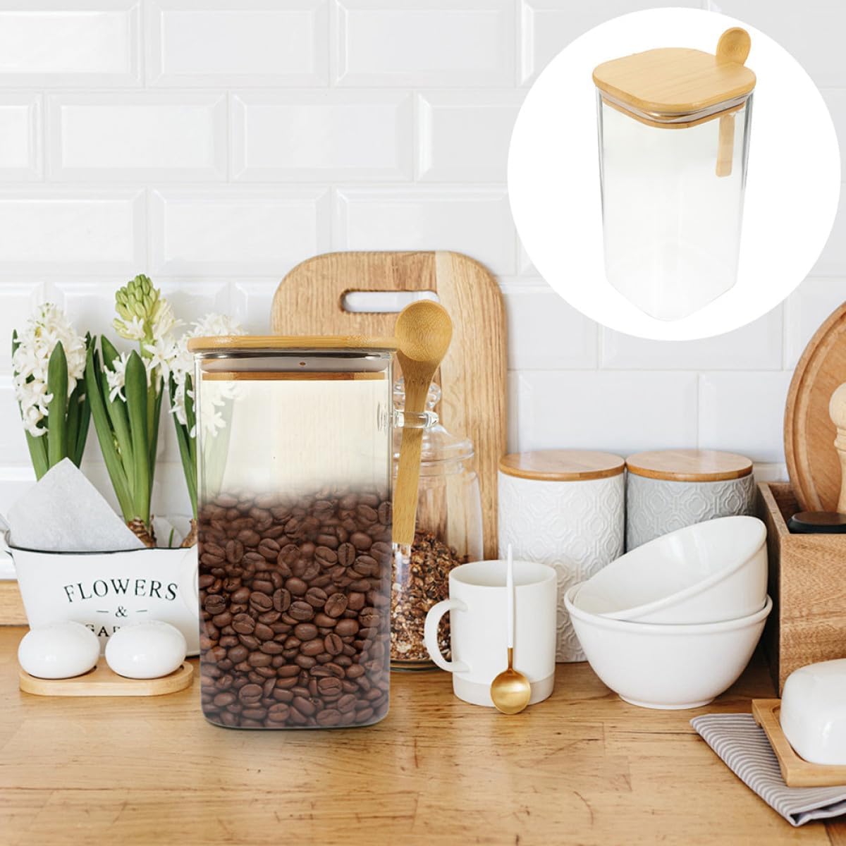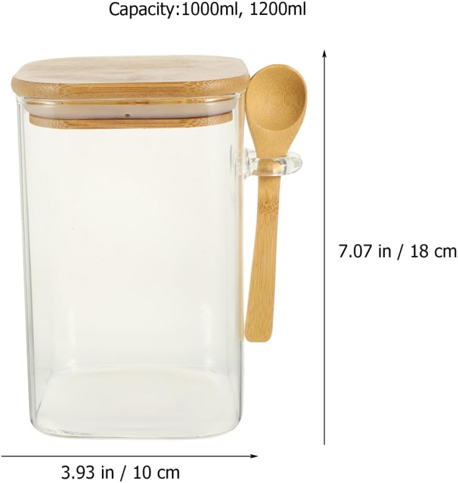 Package Include 2 x Jars 2 x Spoons Features -Product Info:Sealed can set -Material:Glass, , silicone -Size(1000ml):15.00X10.00X10.00cm/5.90X3.93X3.93in -Color:Transparent -Size(1200ml):18.00X10.00X10.00cm/7.07X3.93X3.93in - Could be used as cookie jars or candy jars for kitchen, and even as jars or canisters. Made of clear glass, the glass is very strong. Glass jars with wooden lids, each made of natural wood, airtight glass jar lids with food grade silicone seals kitchen glass storage containers. - The glass storage jar allows you to sort and fetch food conveniently, space-saving and way canisters with lid. - Perfect for storing and preserving a variety of ingredients including preserves, tea, coffee, biscuits glass container. - Great for storing goods such as cereals, nuts, beans, flour, sugar, popcorn, or as a snack or candy jar coffee storage container. - Make sure you have enough space for goods, giving you convenience of storing them in a closet glass containers with lids.Goods Descriptiontransparent storage jar A multipurpose glass food storage jar with a sealing lid.glass jars Made of premium glass material, it is strong and enough for everyday use, which can be used to organize and store food such as whole grains, candy, coffee beans and so on