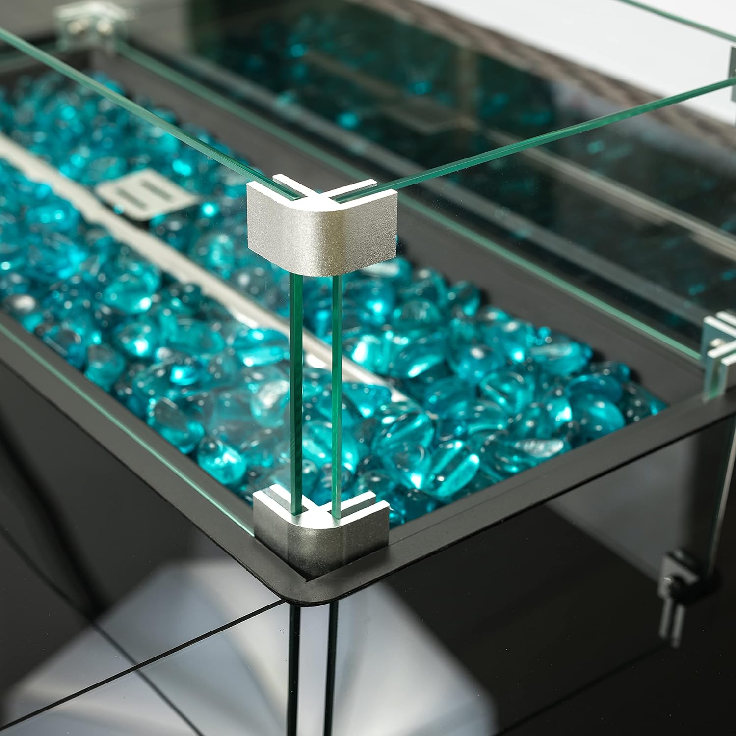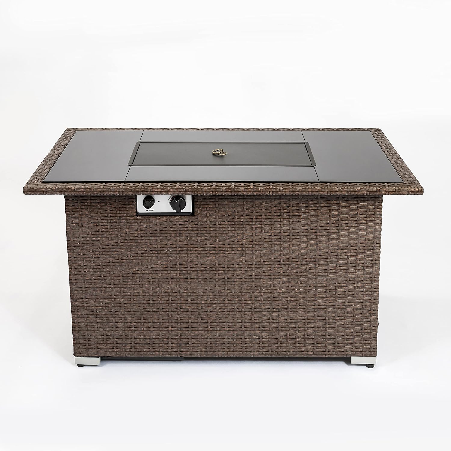 Outdoor 44" Propane Fire pit Table Rectangle 50,000 BTU with 8mm Tempered Glass Tabletop Blue Stone Steel table lid Table waterproof dusty Cover ,ETL Certification (Brown)