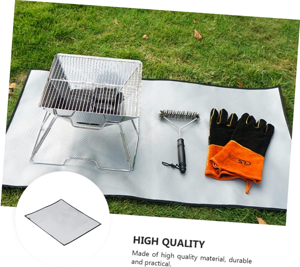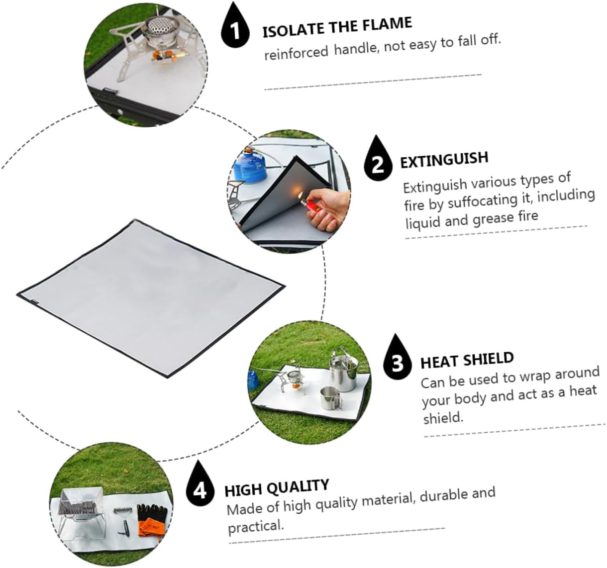 Package Include 1 x Fireproof Blanket Features - Material: Silicone coated glass fireproof cloth Insulation Blanket. - Color: Silver Fire Retardant Fabric. - Size: About 100.50X60.00X0.30cm/ 39.50X23.58X0.12inch Barbecue Supplies. - Fireproof and , no peculiar smell, easy to fold and store Barbecue Insulation Pad. - Suitable used for outdoor camping barbecue protection, survival and fire fighting, etc Blanket. - With fine workmanship and can be used for a long time Hot Pot Pad. - This fire blanket can isolate the flame and reduce the high temperature of the fire Picnic Supplies. - , and , Fire Resistance Blanket.Goods InformationInsulation Blanket This fire blanket is made of good material, can be used as barbecue protective cloth, cloth, stove mat.Picnic Supplies Suitable used for many occasions, such families, schools, kitchens, gas stations and so on.Heat-resistant Placemat Can extinguish various types of fire by suffocating it, including liquid and grease fire