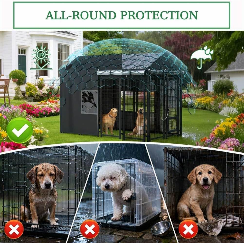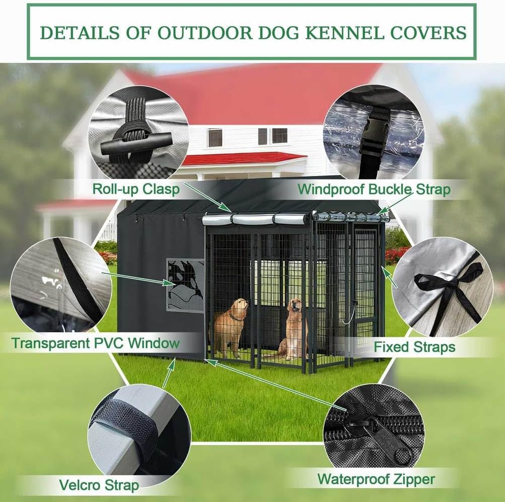 Decent Quality Kennel Cover√ The quality of this cover is excellent. The outer textured fabric is very thick and durable, while the inner layer has a smooth waterproof barrier that provides real protection from the elements. especially appreciate the option of the clear view windows, That feature makes this cover much more practical for you needs.√ Designed with both waterproof and windproof materials, this cover ensures that dog remains comfortable and shielded from the elements. This is fairly nice cover. It has a lot of features that are really handy, especially the zip closed/roll up and open sides. √ One of the standout features is how easy it was to fit over the kennel. The design allows for a straightforward setup, which is a huge relief when managing outdoor equipment. Its high quality construction, made from 600D material, promises durability and longevity, able to withstand various weather conditions without wear.√ This will greatly assist kind-hearted individuals in providing dry, sheltered accommodation for feral cat colonies. During warmer seasons, it offers shade and protection from rain, while in winter, multiple straw-filled insulated boxes and several heat lamps will be added to maintain warmth.√ It’s definitely heavy-duty and well made, and can easily see it lasting for years with proper care.