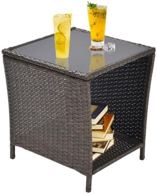 Immerse yourself in outdoor relaxation with Guo Baitur's Outdoor Side Table. Crafted with durable PE rattan and a robust steel frame, this table is built to last. Its versatile design makes it an excellent addition to any outdoor space, functioning beautifully as a small patio table. The table's flat-glass top and bottom storage shelf offer functionality without compromising style, perfect for holding your coffee mug, wine glass, books, and other essentials. With the added benefit of being easy to clean and assemble, this outdoor end table offers a fuss-free outdoor lounging experience. Bring functionality and elegance to your outdoor space with Guo Baitur Outdoor End Tables. Enjoy the convenience and style of outdoor living today!
