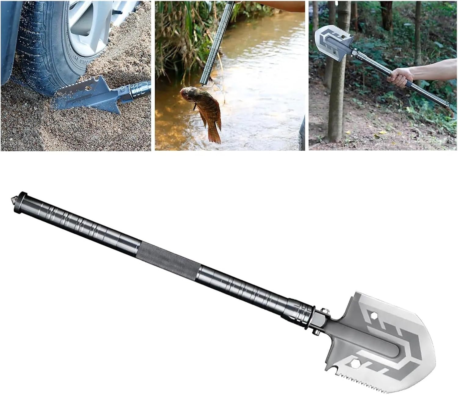• Multi functional Outdoor Shovel - This is an all-in-one multi tool, you can use it as shovel, hoe, axe, saw, crowbar, harpoon, awl, wine opener and more.