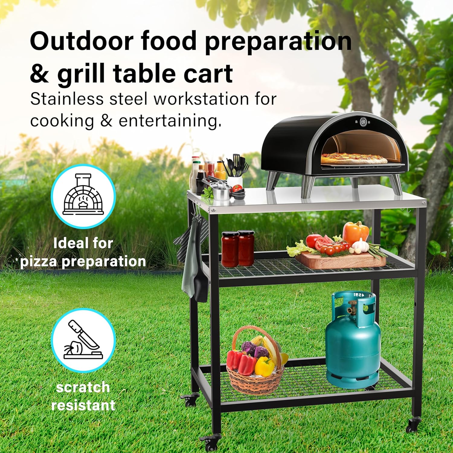 Stainless Steel Table Pizza Oven Table Pizza Oven Accessories Pizza Oven Stand Table on Wheels 80x60x90cm