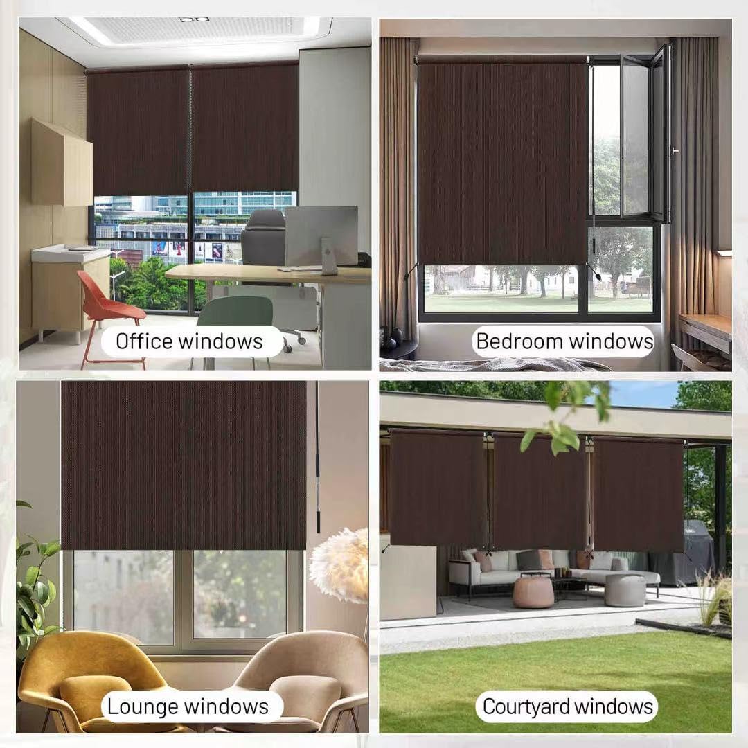 Outdoor Roller Shades are the perfect fit for a wide range of outdoor spaces, including porches, gazebos, patios, backyards, decks, balconies, pergolas, and more. Tailor the ambiance of your chosen scene with ease and style, from tranquil mornings with a cup of coffee to vibrant garden parties or cozy family dinners. Outdoor Roller Shade 4' W x 6' H Fabric Blind Cordless Roll Up Shade, Operation Exterior Roller Shade Cloth for Patio Porch Gazebo,Dark Brown
