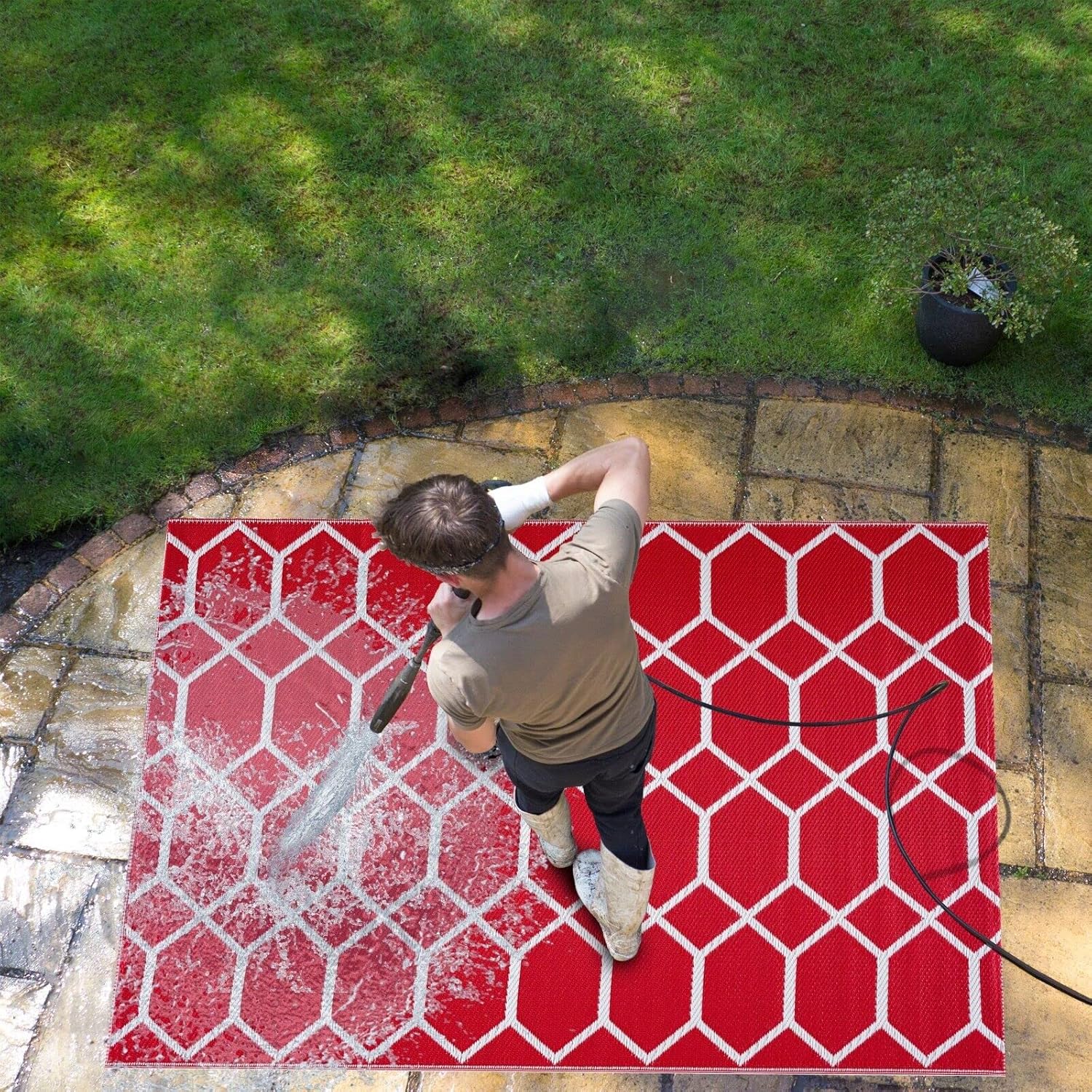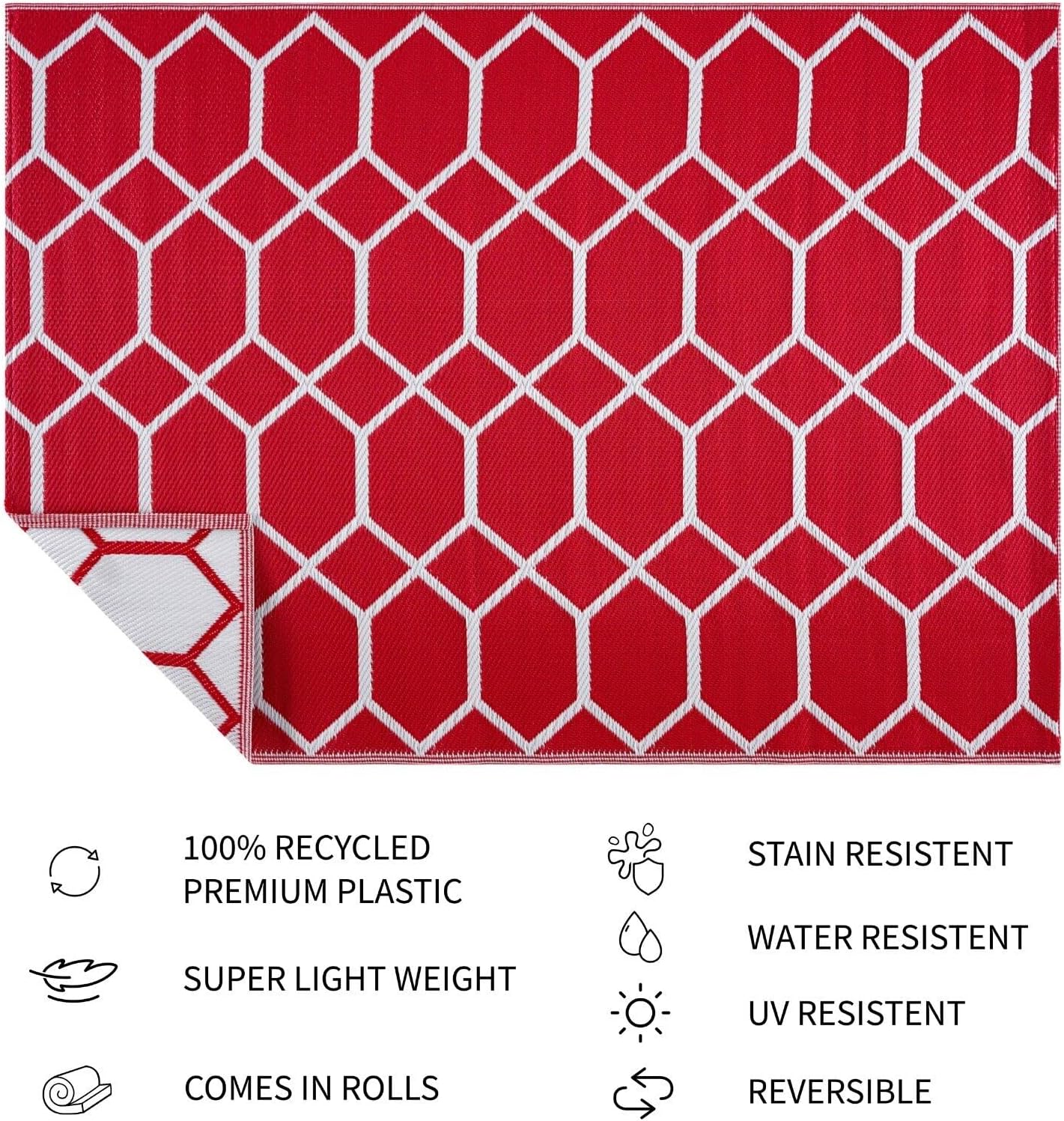Introduce a pop of color and pattern to your outdoor space with our Miami Design Eco-friendly Lightweight Plastic Mat/Rug. Made from 100% recycled plastic straws and woven with high-quality workmanship, this tightly-woven outdoor rug is soft and comfortable underfoot while still being strong and durable. With its reversible design and naturally stain and fade-resistant material, this rug is perfect for any outdoor setting. This machine-made rug is also UV and water-resistant for easy maintenance.