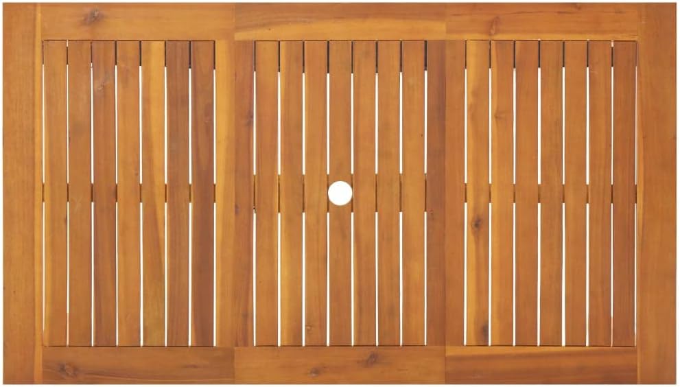 This solid acacia wood patio table with a practical design is perfect for adding a touch of rustic charm to your garden, terrace or patio.This patio table is made of solid acacia wood with an oil finish, which is a hardwood with dense grains. Rough acacia wood has the strength to bear the weight, and also stand the wear and tear of time. This wooden table is stable, durable and weather-resistant. The sturdy tabletop is ideal for dining and placing decorative items such as vases or potted plants. Additionally, the oil-finished surface makes it easy to clean with a damp cloth. Thanks to its lightweight design, the table is easy to move around.Important note: The colors and grains vary from piece to piece, making each piece unique. The delivery is random.Material: Solid acacia Woodwith an oil finishDimensions: 55.1" x 31.5" x 29.1" (L x W x H)Easy to maintainWeather-resistantAssembly required: Yes