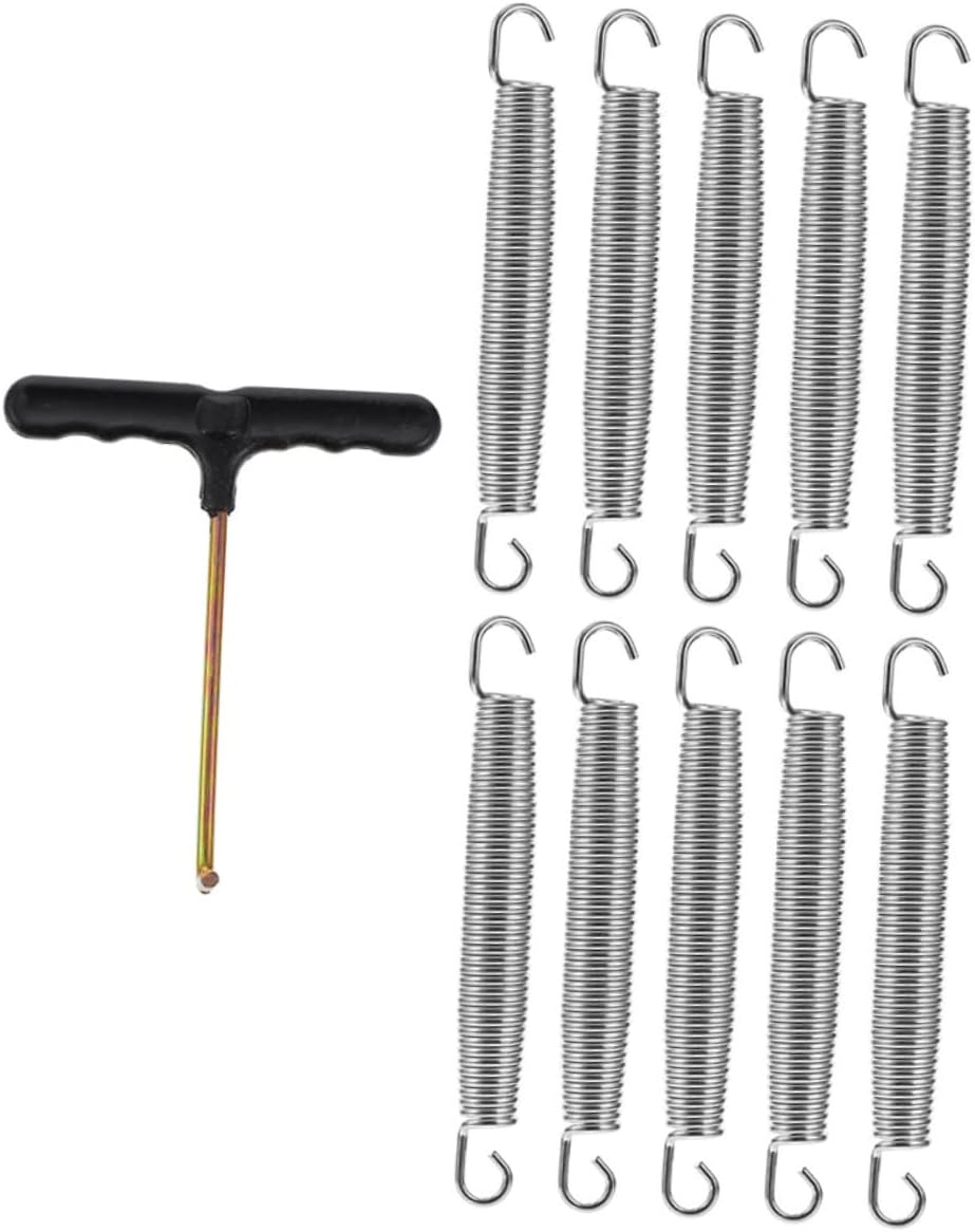 Package List 10 x springs 1 x hook Features -Material: Galvanized steel wire trampoline springs replacement - The galvanized steel trampoline spring is made of galvanized iron wire to and rust caused by natural acid, moisture and Trampoline Supplies. - With a spring hook, it is easier for you to install and disassemble, bringing you great convenience trampoline springs. - You can buy this durable trampoline spring at a very springs for trampoline. - The spring is thicker, the number of coils is larger, the cone is wider, and the load-bearing capacity is stronger trampoline spring. - It is small in size, light in weight, convenient to carry and store, and will not take up much space trampoline replacement springs.Goods Descriptiontrampoline spring replacement This is a trampoline spring and hook set, made of galvanized steel wire material, strong load-bearing capacity, can be installed very easily, can perfectly support the trampoline, so that the trampoline does not allow collapse