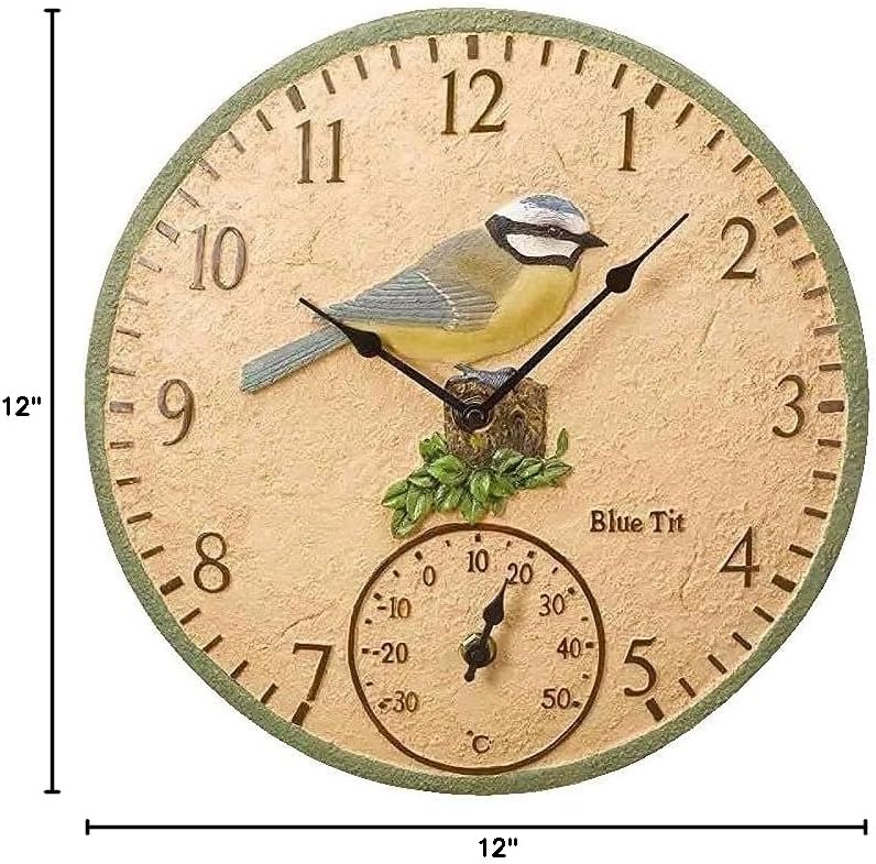 product description Size name: 12 inches/30cm The silent round wall clock is a stylish design clock with a variety of patterns to meet all your needs. The high-quality quartz sweep movement guarantees accurate time and an absolutely quiet environment. As a gift to parents, children, relatives and friends, they will love this timeless clock. attention: 1. The wall clock is powered by 1.5 AA carbon zinc or heavy-duty batteries. Excessive current in alkaline batteries can easily damage the movement and accuracy. 2. As the battery is subject to international transportation restrictions, the battery is not included in the package. This cute Robin wall clock is designed for indoor and outdoor use. It has Arabic numerals and skip hand movement, with a Celsius thermometer reading. Made of hand-painted resin, with a total diameter of 12 inches, it is the perfect clock for your shed, greenhouse or summer house. How to use the hook: 1. Please fix the hook on the wall before the wall clock. 2. Insert a 1.5 AA carbon battery and set the time. 3. The rear slot is hung on the hook. The package includes: 1 x wooden wall clock (not including battery) 1 hook Due to long-distance transportation, the pointer may loosen. It is recommended to reinstall it after getting it. Note: If you have any questions, please contact us directly. We can solve it within 24 hours.