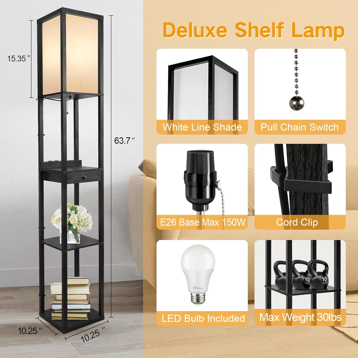 | Included Components | Floor Lamp, Lampshade, 9W LED Bulb, Charging Station, Drawer,User Manual |