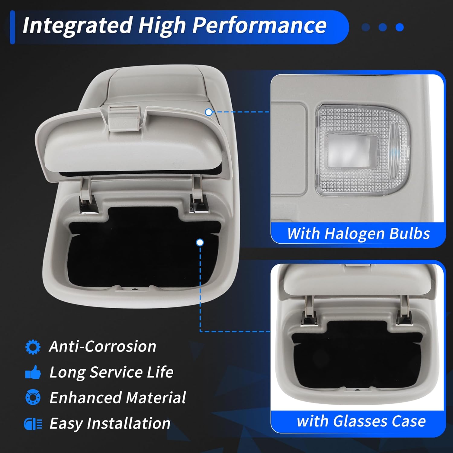 • [Package Included] 1 Pcs Overhead Console Light Assembly (with Halogen Bulbs and Sunglasses Case). Not OEM Product, Replacement Part Only.