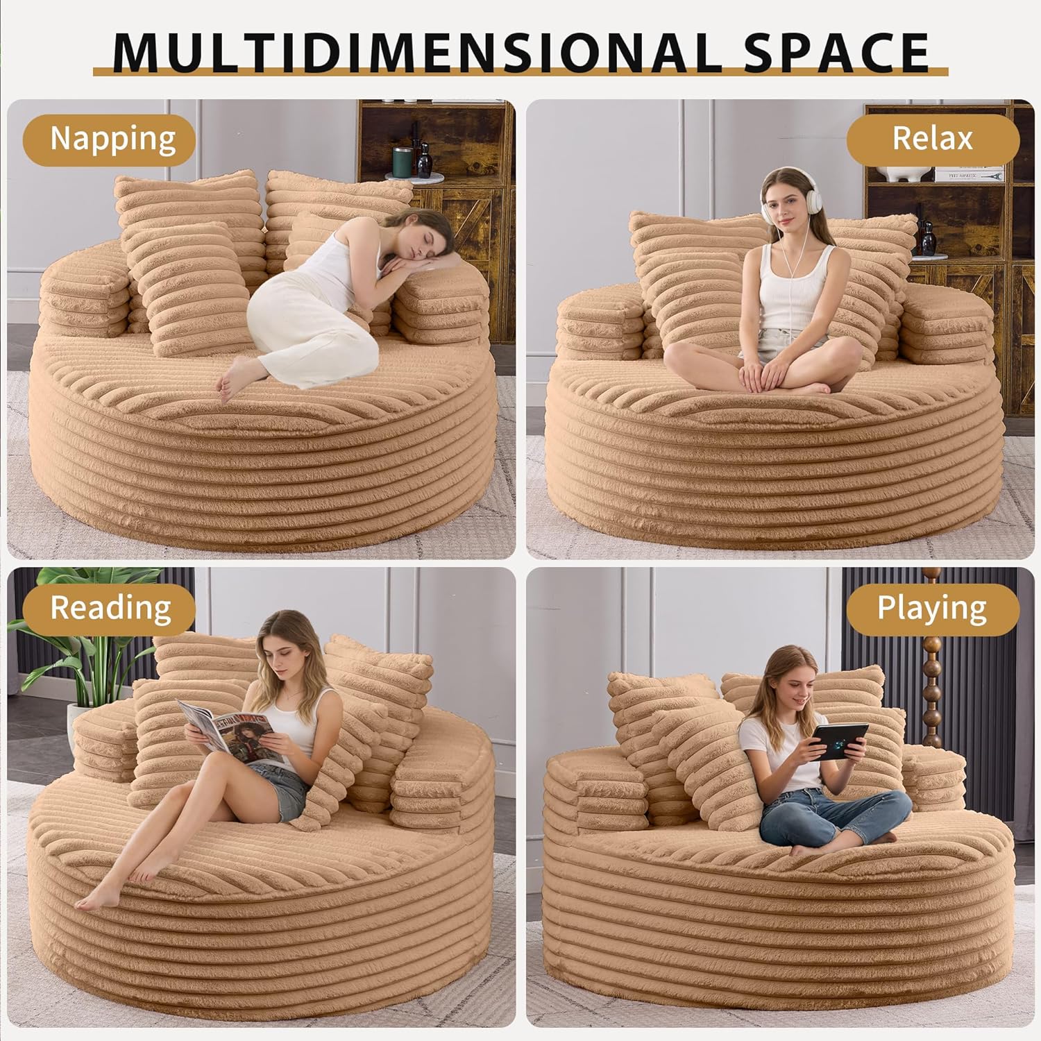 Transform your living space into a haven of comfort and style with our Luxurious Oversized Upholstered Chaise Lounge Chair. Designed for those who appreciate both form and function, this chair is the ultimate solution for your relaxation needs. Sink into the deep seat lounge chaise, expertly crafted to provide unparalleled support and space, allowing you to sit or lie down in total comfort. Wrapped in a layer of incredibly soft and comfortable faux fur fabric, every touch is a luxurious experience that invites you to relax and stay a while. The chair’s elegant barrel shape and wide arms design are not just visually appealing but also provide exceptional practicality, offering a perfect spot to rest your arms or your essentials. Forget about complicated instructions and wasted time; enjoy the convenience of a product that requires no assembly needed, arriving ready to deliver immediate comfort. Whether you need a stylish accent chair for your living room, a serene spot for meditation, or a comfortable companion for your home office, this reclining chaise lounge chair is suitable for different situations. It’s more than just a piece of furniture—it’s your new favorite spot to decompress and enjoy moments of quiet tranquility. Invest in the plush boneless sofa chair that redefines cozy living.