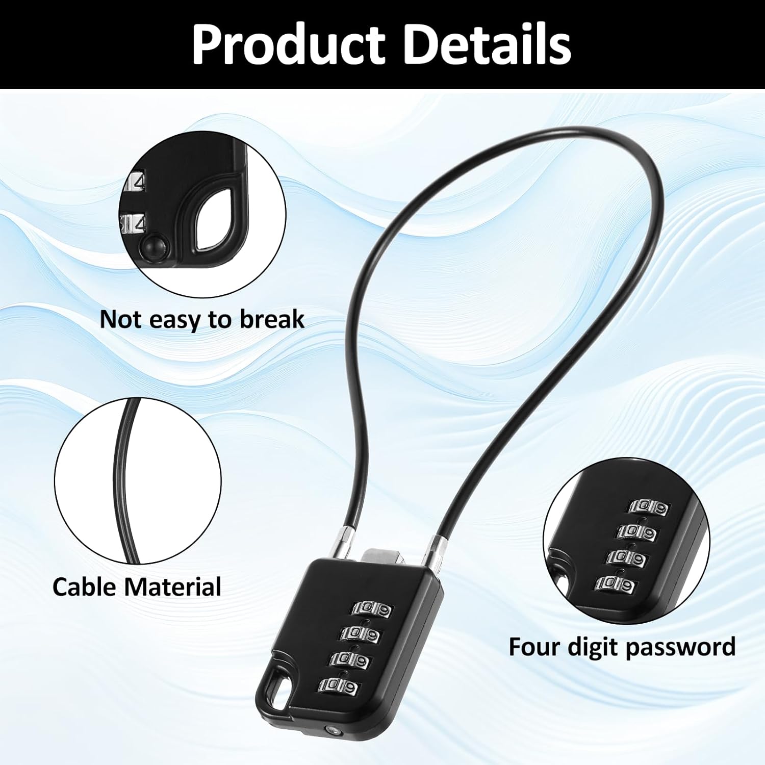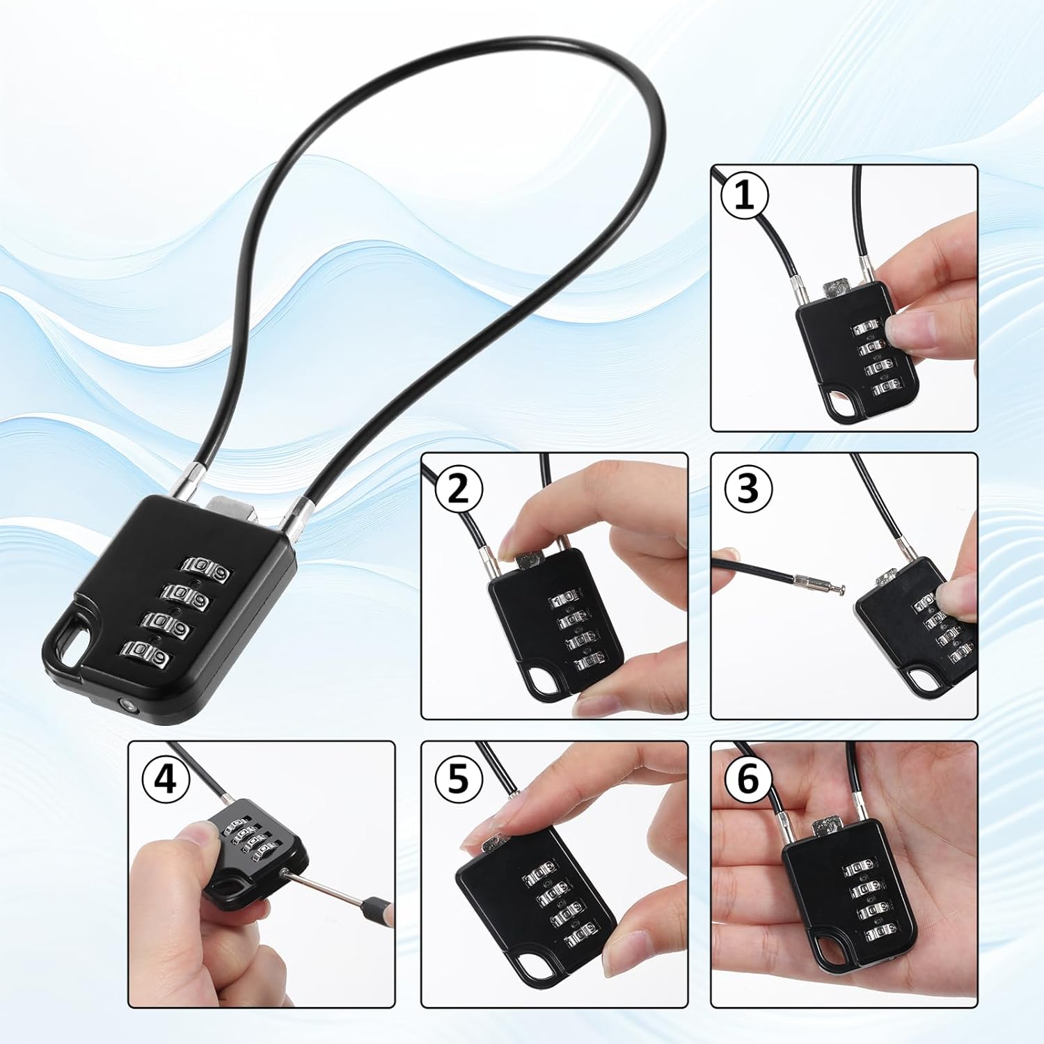 Whether for securing luggage, lockers, bicycles or storage boxes, this rope lock is designed for both travel and daily security needs. Product Name: Combination Lock Material: zinc alloy + ABS Colour: black. Product dimensions (cm): see packing list. Package Content: 2 x Black Combination Locks (30cm Cord)
