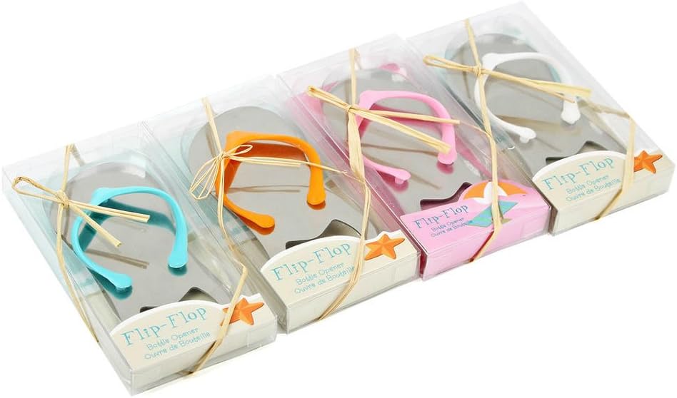 Occasion: Wedding, Anniversary, Bridal Shower, Birthday Party, Bachelorette Party Themes: Beach Theme Materials: Metal + Rubber Color:Orange Personalization: Personalized Approx. Size: Flip flop measures 1 1/4" x 3 1/2" Net Weight: 0.03kg / pc Shipping Weight: 2.5kg for set of 50 Packing: Gift Box Quantity: Set of 50 Processing Time: 3-5 business days