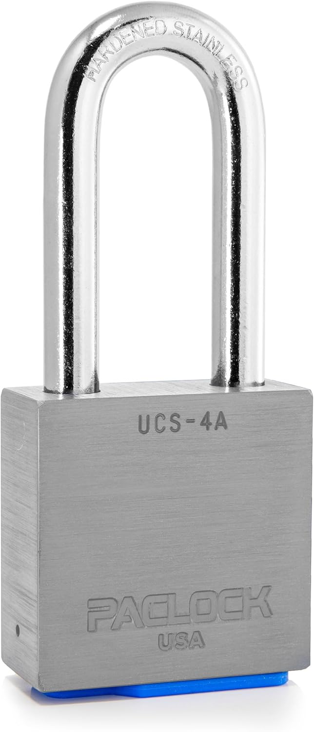 PACLOCK's UCS-4A is an all-purpose padlock that's machined from 6061 aircraft-grade aluminum. It features an industry-first 7/16" diameter "hardened stainless steel" shackle that is tough to cut and weather resistant. All brass, aluminum, and stainless steel components render the lock rustproof. Our 6-Pin technology (more than the industry standard 4 pins) provides over 20,000 unique key codes and makes duplicate key combinations extremely rare, meaning that your key number is virtually unique to you. The stainless steel spool and serrated security pins make the lock pick, bump, and drill resistant. Includes the PAC-BAND, a field-replaceable silicone cover to protect the cylinder from the elements. CNC machined for precision and reliability, the lock body exceeds +/-0.003” tolerances for repeatable quality. There is no other retail product on the market today that solves customers padlock keying problems like PACLOCK's Universal Cylinder System (UCS). UCS provides YOU with maximum flexibility over YOUR key system with its “Every Lock, One Key” mentality. Key different-styled UCS padlocks alike, such as job box locks, trailer door locks, and coupler locks, just to name a few. YOU become your own locksmith and get to change your keying since UCS makes it easy for you to pin up your own cylinders at any given time. Whether your locking system gets compromised and you need to quickly change up your keying system, or you just fired an employee who still has a key to your locks, or you have keyed different padlocks but want to key them alike – UCS makes key changing simple. You can also quickly change your shackles to transform your locks from a standard length shackle to a longer length shackle, or vice versa, at any time.