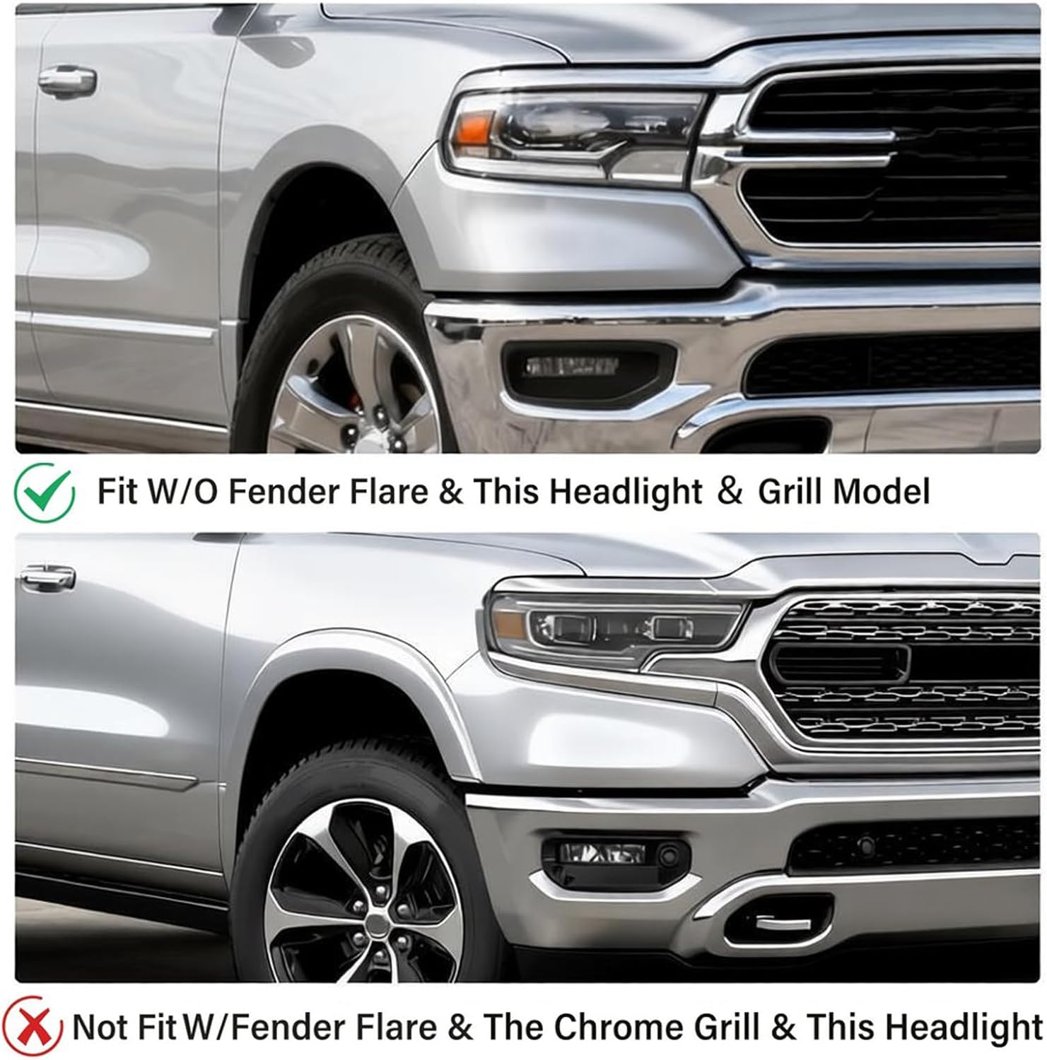 Fit for Ram 1500 2019-2024 Replace OEM Part Number: 68403910AE, 68403910AA, 68403910AB, 68403910AC, 68403910AD, 68403911AE, 68403911AD, 68403911AB, 68403911AA, 68403911AC Package Listing: 1 x LH Left Bumper End Filler Panel; 1 x RH Right Bumper End Filler Panel