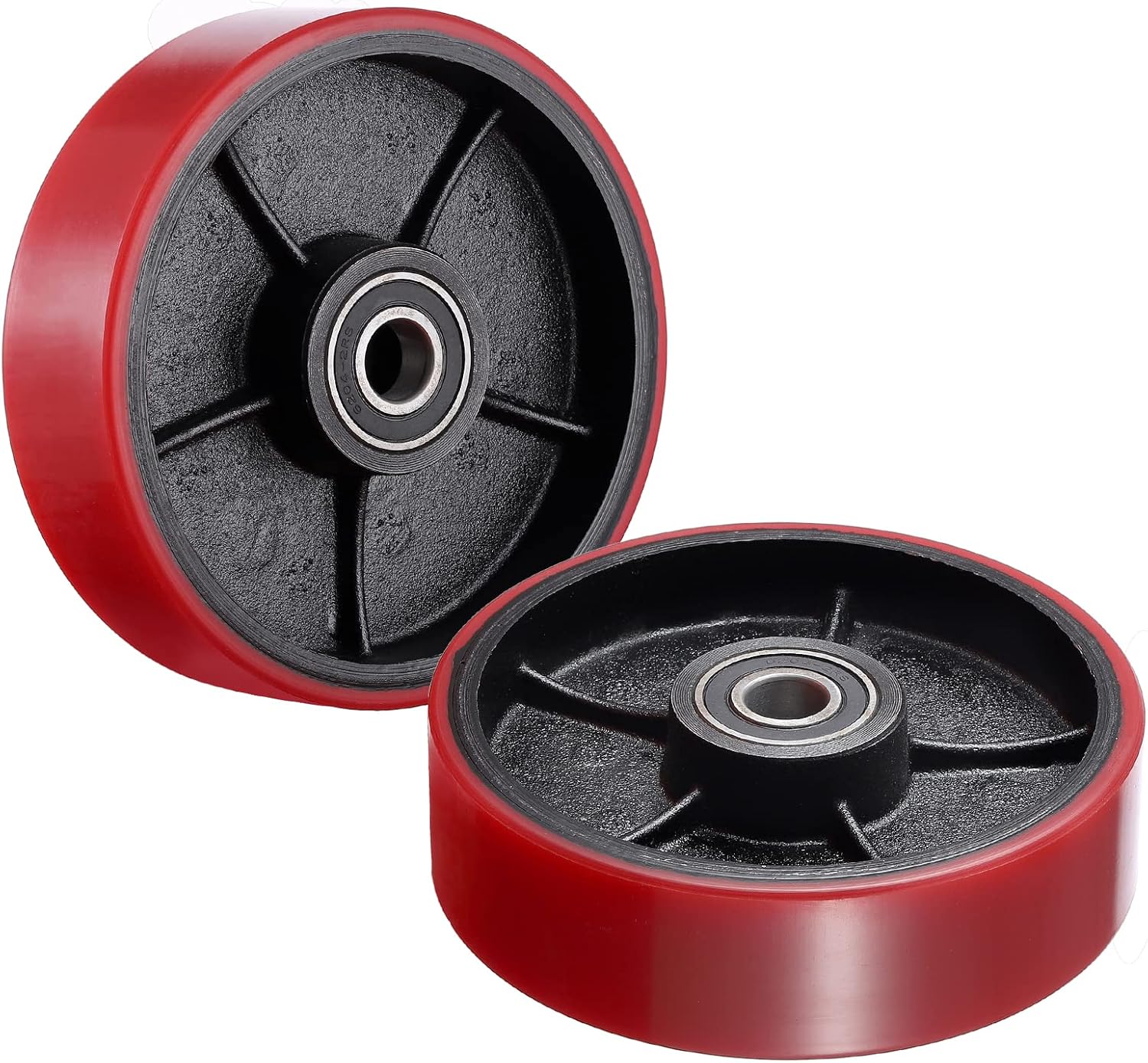 Heavy-duty Pallet Truck Replacement Wheels designed for replacement on most standard pallet trucks 7"x2" sizing also may allow for use on other compatible pallet trucks . Steer wheel - diameter: 7" , hub length: 2" , hub id: 20mm Load wheel - diameter: 2 - 15/16" , hub length: 3 - 9/16" , hub id: 20mm Bearings are trade number 6204 | i.D. 20mm | o.D. 47mm Product Type: Rear replacement wheels, Material Type: Polyurethane