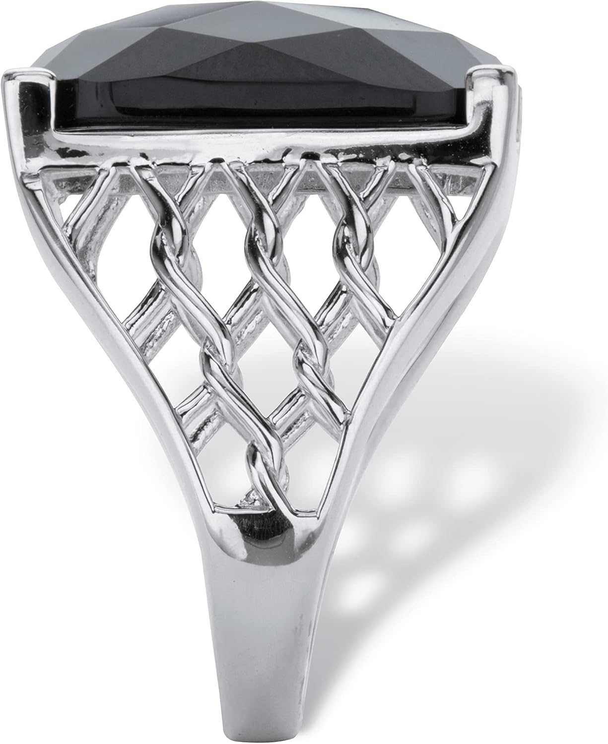 PalmBeach Jewelry exclusive. This beauty is all about contrast and dimension with a checkerboard-cut genuine onyx stone shimmering with facets for days. Sitting atop an openwork band with ornate detailing, this ring is one you'll love to show off. Sterling silver. Sizes 6-10. - 63579
