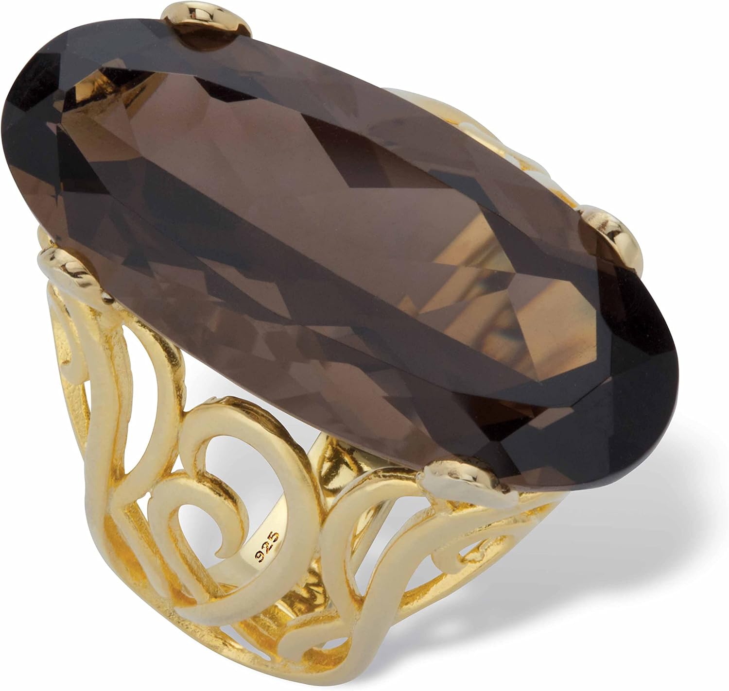 PalmBeach Jewelry exclusive. Glam it up and shimmer like a star with this gorgeous cocktail ring. Featuring a huge genuine smoky topaz faceted oval stone, it sits atop an intricately designed scrolled shank for a glamorous presentation. Get ready for the oohs and ahhs with 4 carats T.W. 14k gold-plated sterling silver. Sizes 6-10. - 63831