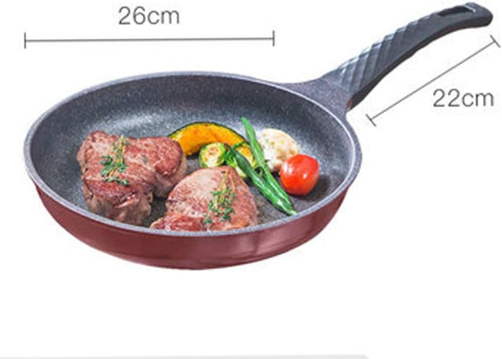 The cookware is made of high-quality and strong aluminum alloy, which has excellent cooking performance and durability in the kitchen. Each product is carefully designed and manufactured to be used for life, so you can enjoy years of cooking and entertainment experience, and cooking with durable, professional-quality cookware is indeed a pleasure. Function: 1. Strong compatibility: A pot made of thicker materials can heat food evenly and maintain the original taste and flavor. It is also compatible with all gas, cookers, ceramic and halogen cookware. Suitable for cooking all kinds of ingredients, fried meat, tortillas and all kinds of delicious food! 2. Sturdy handle: The non-scald handle is made of high-quality bakelite material, strong, safe, easy to clean, reinforced rivet design, can easily lift a pan full of food. Easy to store The lifting ring on the handle is designed for hanging storage, which is easy to dry and saves kitchen space. 3. Maintenance and use: reduce the heat when the required pot temperature is reached. Overheating can cause damage. Do not heat or dry the empty pan. Do not put hot pot in cold water. You can wash it directly in the dishwasher or by hand. Can be dried immediately after washing. Specification: Size> 1x frying pan> 26CM