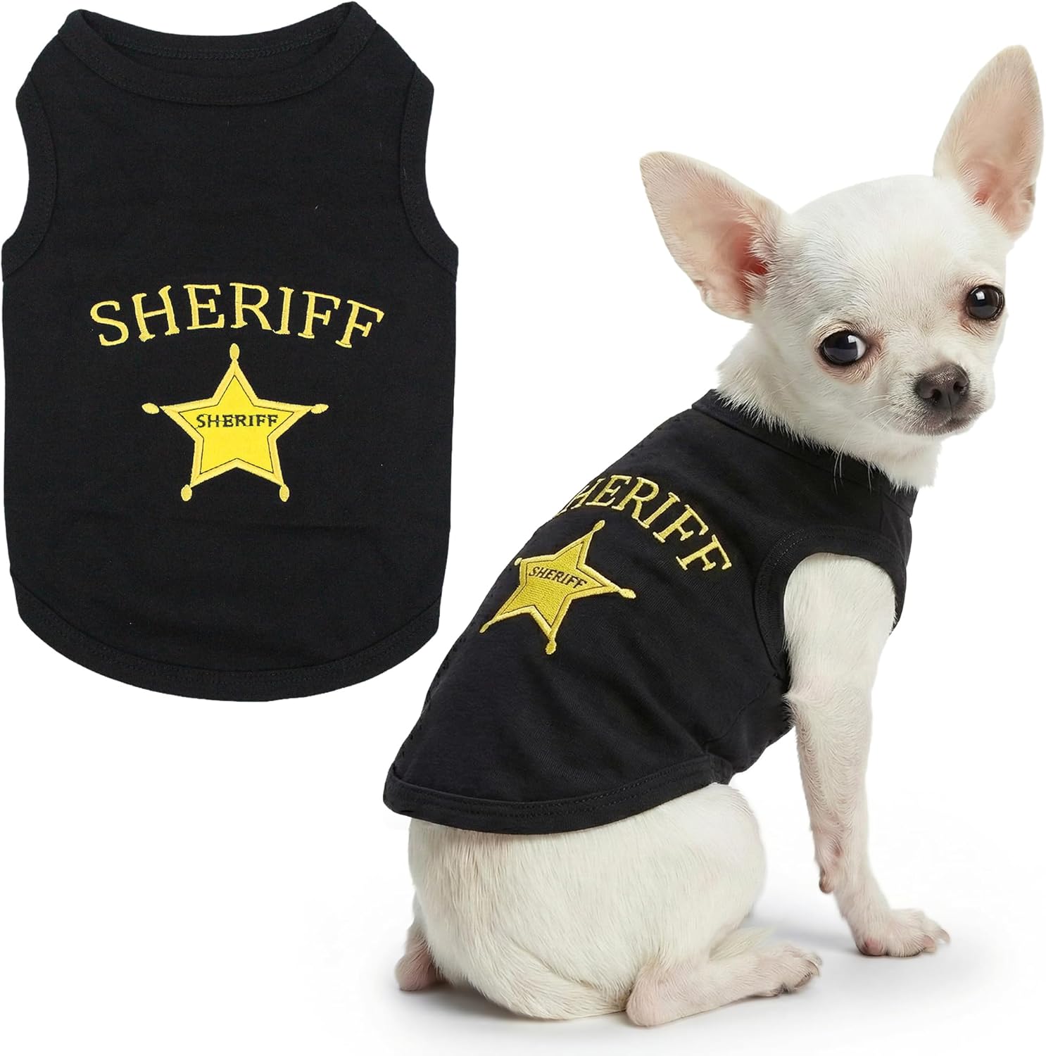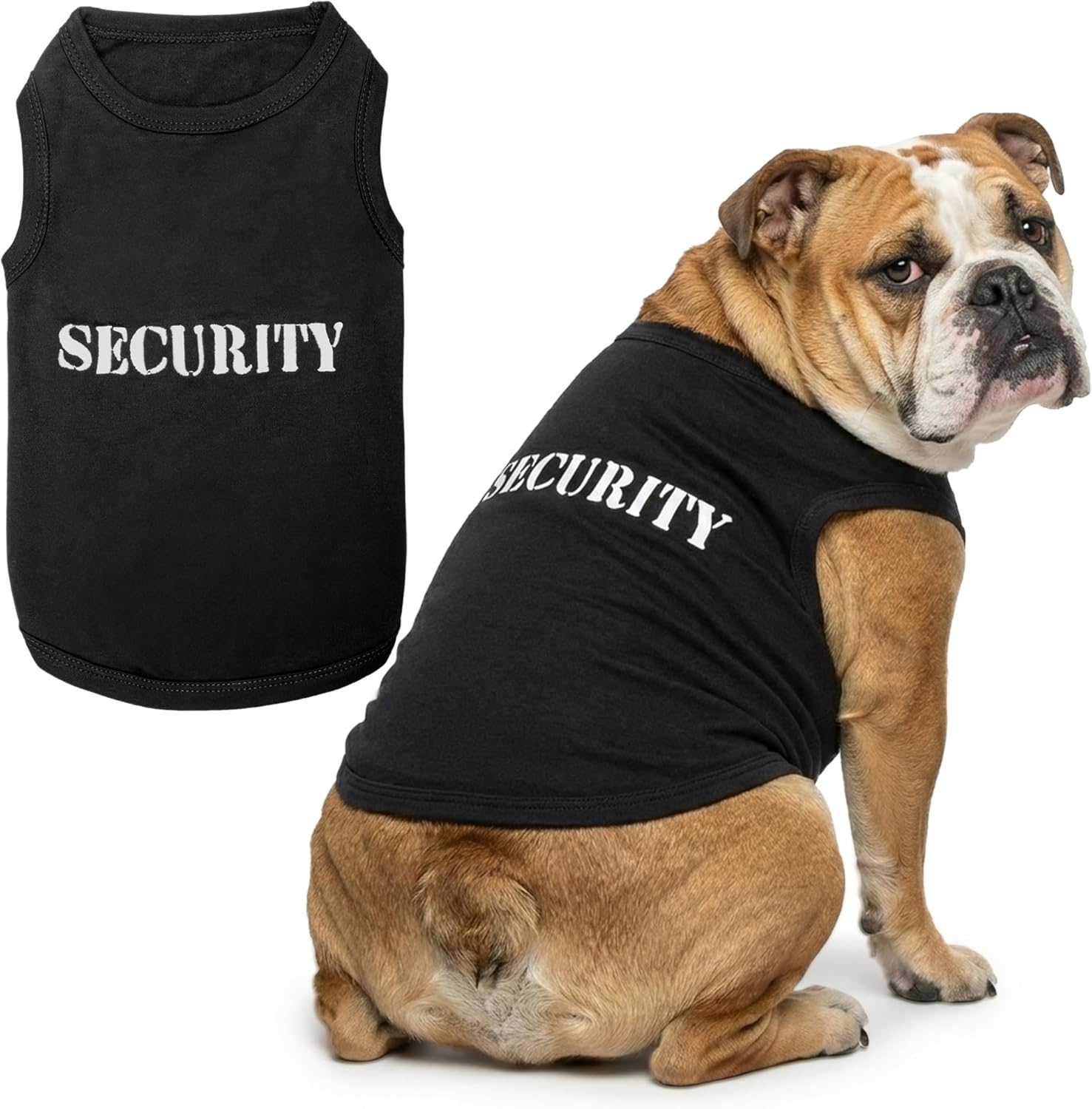 Parisian Pet Two stylish designs to match your dog’s personality—double the cute moments. Give your dog a bold, professional-inspired look with this Parisian Pet 2-piece dog shirt set, featuring one Security-themed design and one Police K-9–style design. Created for pet parents who love standout style, these shirts add a confident, on-patrol vibe that turns everyday walks, photo moments, and themed occasions into something special. Designed with comfort in mind, these dog shirts are made from soft, breathable cotton that feels gentle against your pet’s skin. The sleeveless cut allows easy movement and improved airflow, helping your dog stay comfortable during warm days while remaining light enough for indoor wear or layering when temperatures drop. The pull-on style makes dressing quick and stress-free for both you and your pup. Built for everyday use, these shirts are easy to care for and made to maintain their look through regular washing. Available in XL, 3XL, and 4XL sizes, they are well-suited for larger dogs—simply measure before ordering for the best fit. With two different shirts included in one package, this set offers added value, versatility, and more ways to dress your dog in a confident, eye-catching style. Choose Parisian Pet for comfort, style, and undeniable charm!