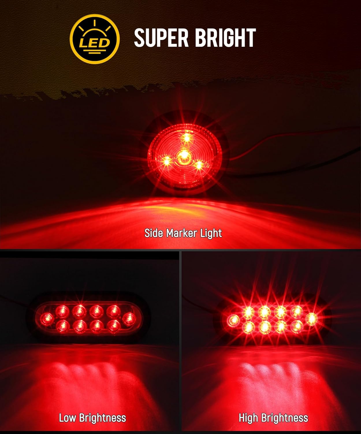 | Additional Features | 2" round 4LED side mark clearance lights w/grommet and plug, 6" oval high visibility 10 LED stop/turn/tail lights with grommets and plugs |