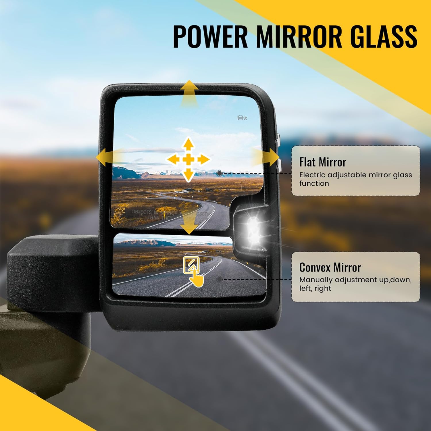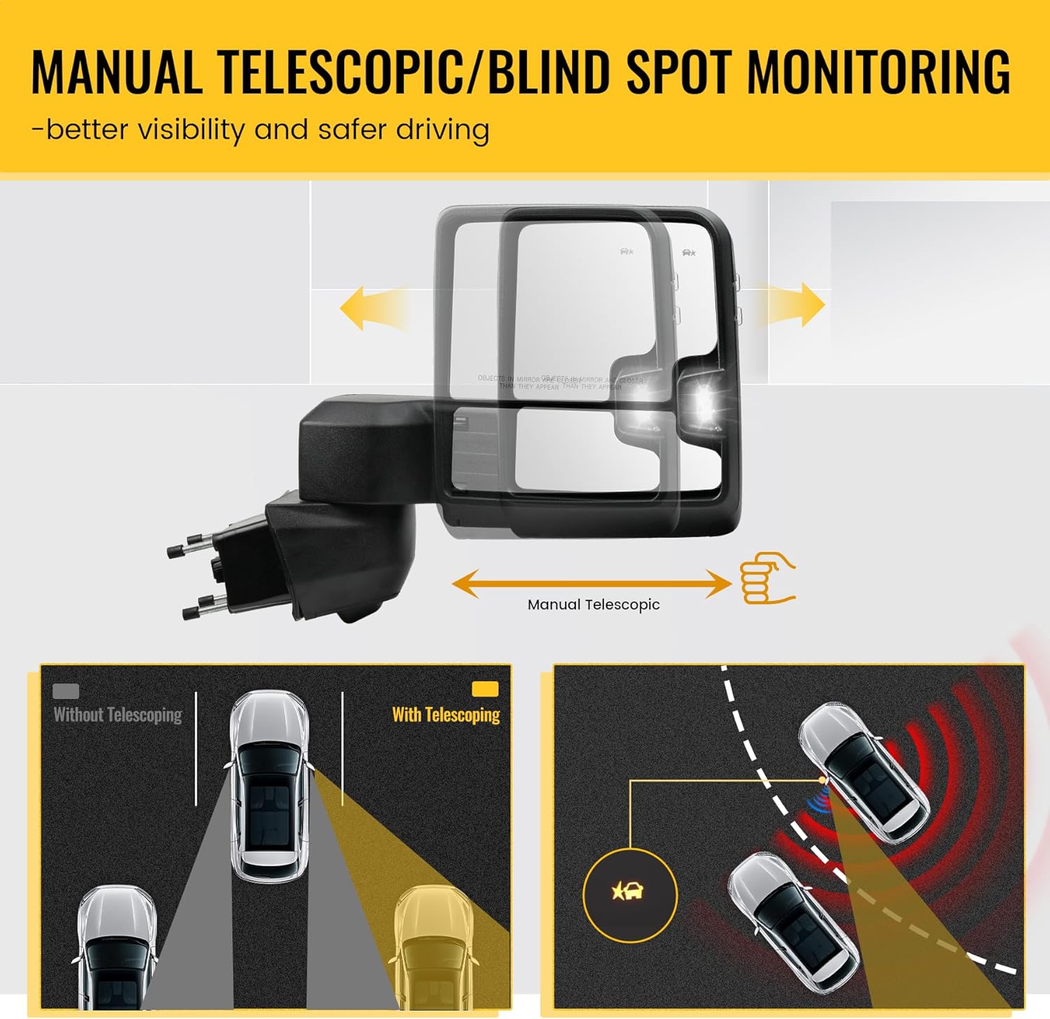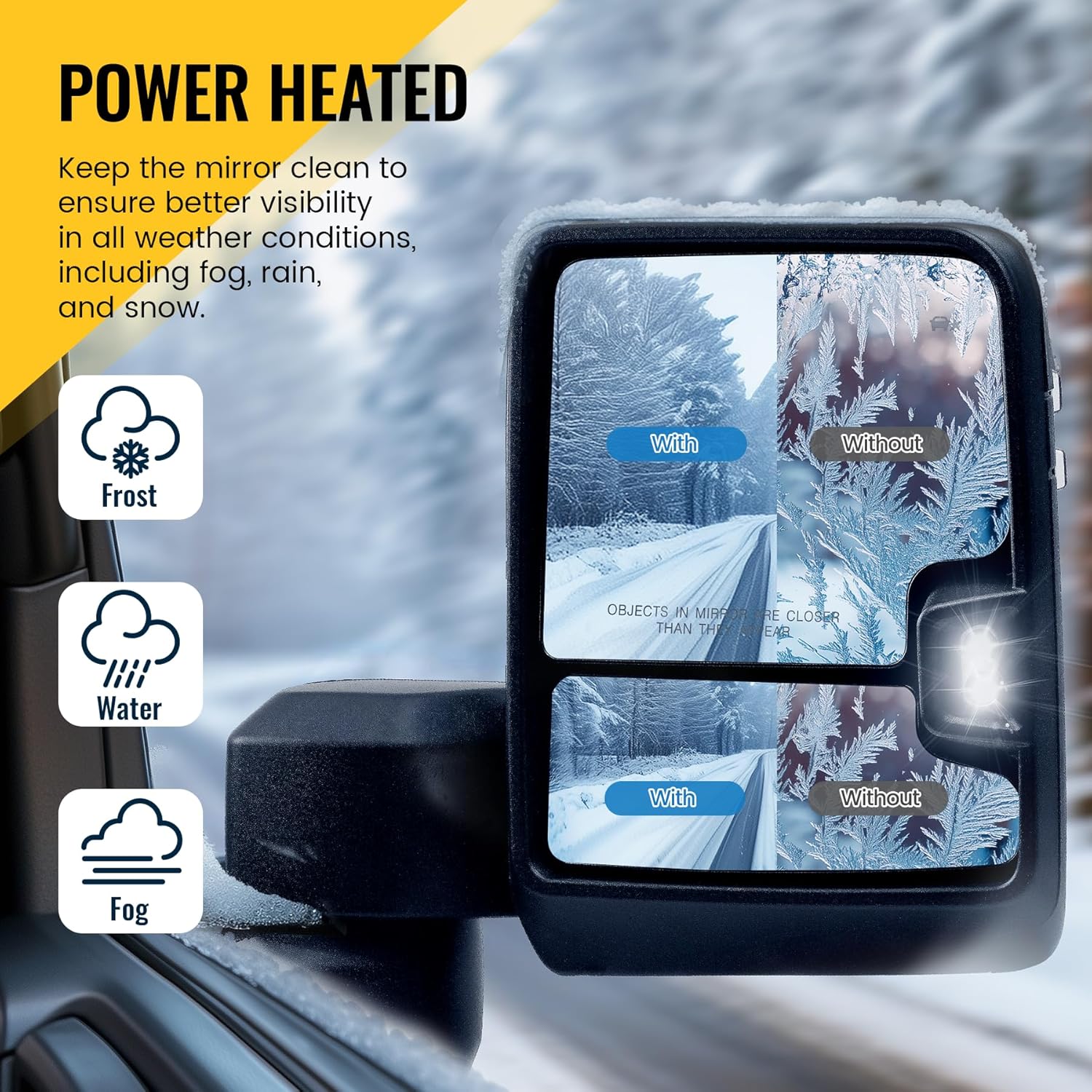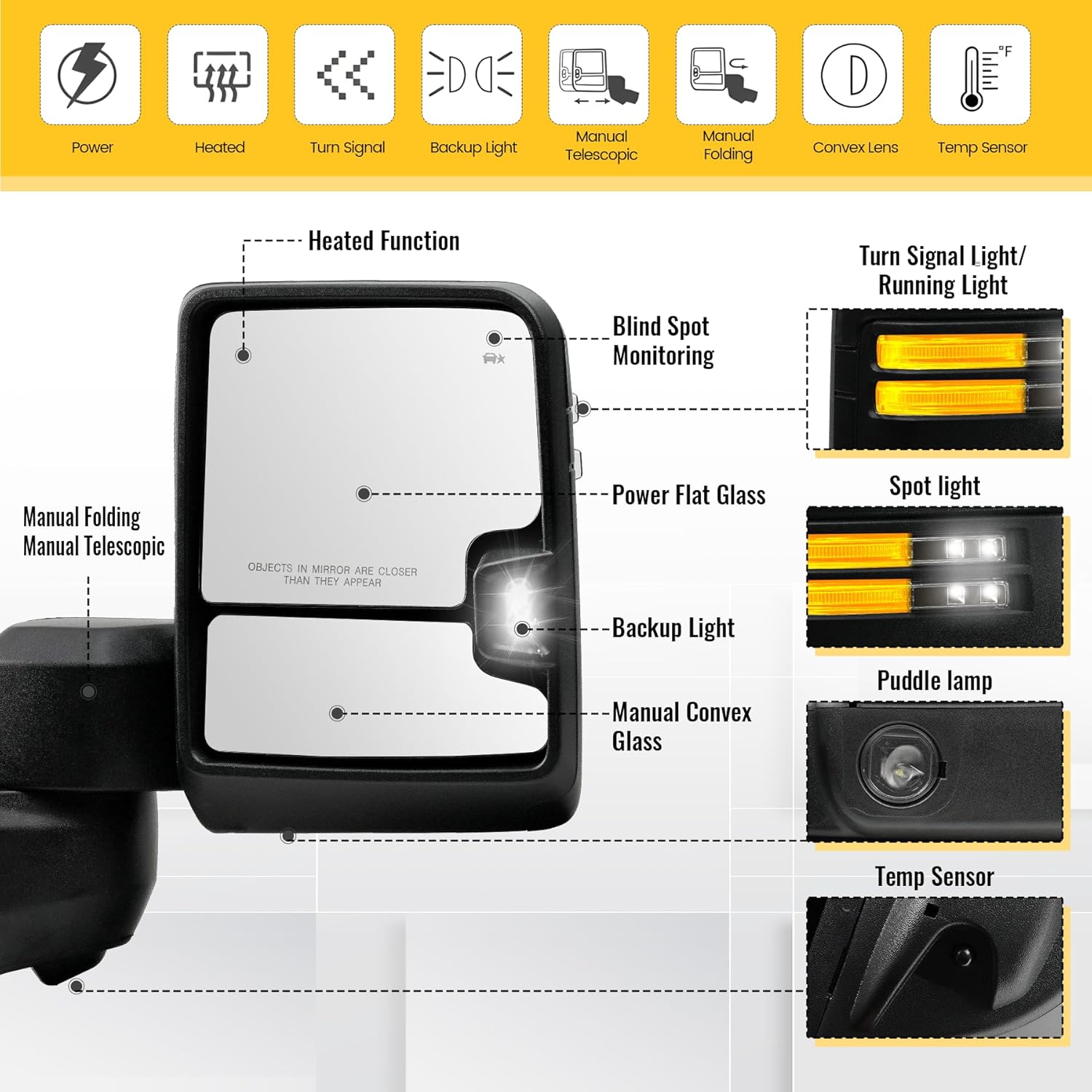 Fitment: Compatible with 2019-2025 Chevy Silverado & GMC Sierra 2500HD/ 3500HD, with Heated Power Glass Manual Folding Temperature Sensor, Turn Signal & Running Light Puddle Lamp BLIS Black Back Cover