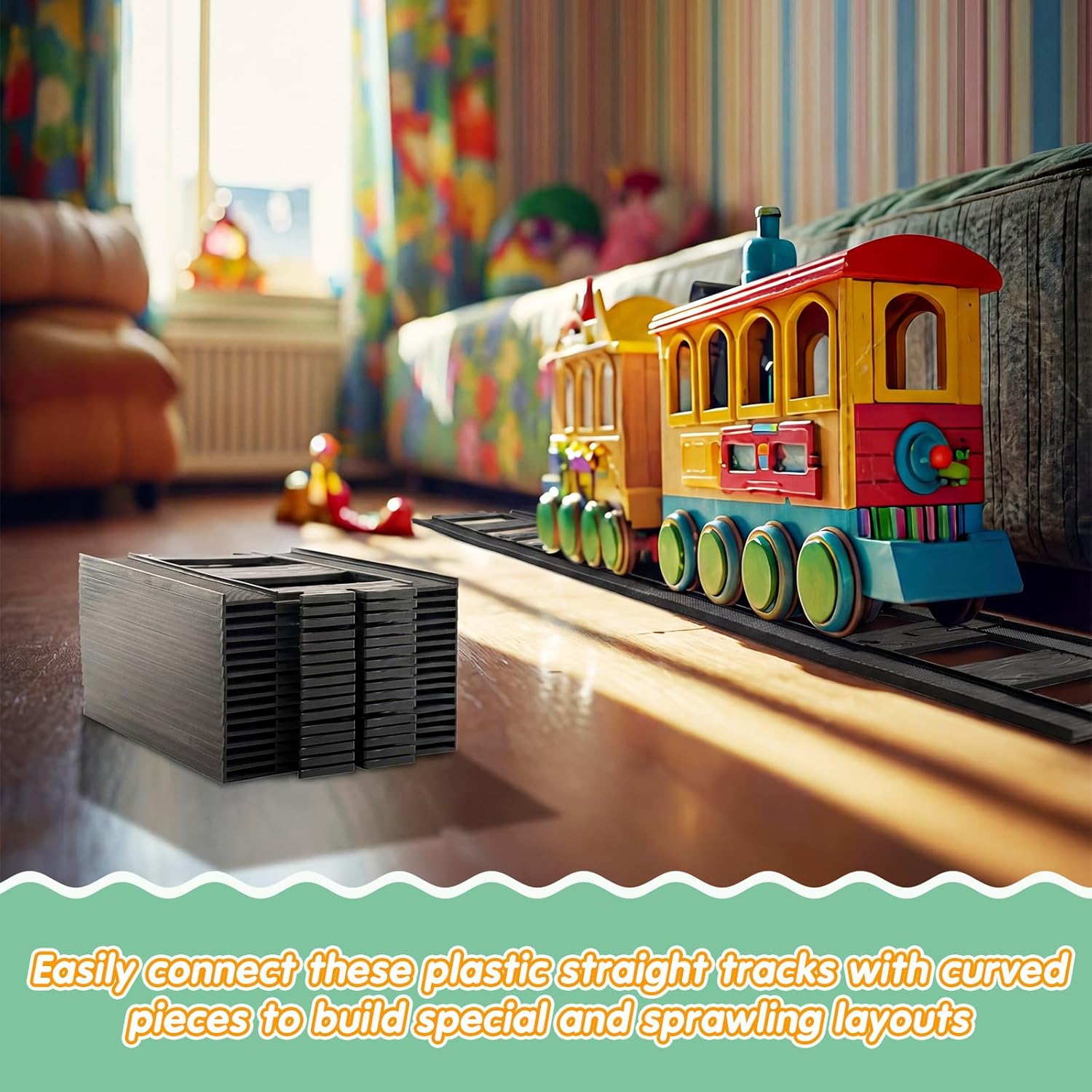 Features: With 24 pieces in one pack, you have the components to construct extensive and ambitious track layouts. Move beyond basic loops and design intricate routes that provide hours of immersive, engaging play for train enthusiasts. An ideal present for any train lovers. This versatile set is guaranteed to spread joy and creativity. It's a gift that promises endless fun and developmental play, ideal for birthdays and holidays. Specifications: Material: plastic Color: black Size: about 9.1 x 9.4 inches Package includes: 24 x Plastic straight tracks Notes: Manual measurement, please allow slight errors on size. The color may exist a slight difference due to different screen displays. Please understand that train in the picture are not included