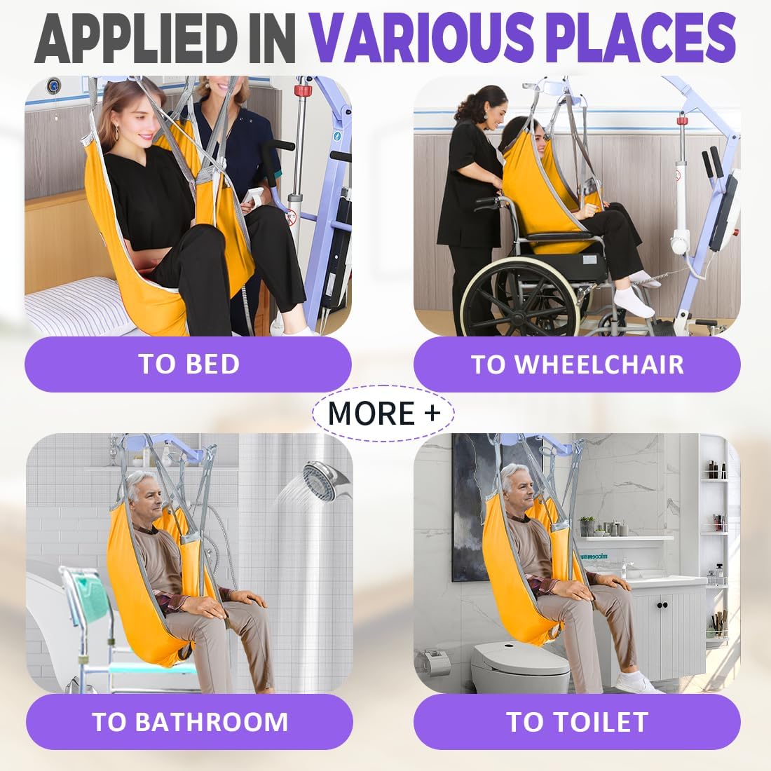 EZ Assistive Divided Leg with Lower Back Sling features a four points polyester sling for patient transfers and supports up to 500lbs (230kgs). This patient lift sling has four sling points and it is compatible with most floor and ceiling lifters. There is a handrail sewn on the back of the sling for easier patient positioning. There has a pocket on the back of the patient lift sling, making it easier for caregivers to quickly put the patient lift aid sling on the patient. Whether you are moving someone from a bed to a wheelchair, recliner, sofa, toilet, bath tub or shower seat, or from the floor to bed, you can easily and comfortably transfer them from Point A to Point B.