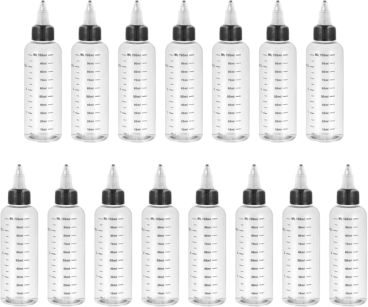 The dispensing bottle is widely used in the kitchen, home, and laboratory for dispensing or storage of liquid, oils, sauces, and dyes. They are suitable for cakes, cookie making, and crafts making.SpecificationCapacity:1 Ounce/30mlOverall Size(inch): 110 x 27.8mm/4.3 x 1.1inch(H*OD)Bottle Height: 78.8mm/3.1inchMouth Inner Diameter: 12.4mm/0.5inchMouth Outside Diameter: 17.6mm/0.7inchColor: Transparent(Bottle Body); Black(Bottle Cap)Material: PlasticPacking List: 15Pcs x Dispensing BottleAdvantage1. The dispensing bottles are made of durable polyethylene material, which is not easily broken and deformed and can be used for a long time.2. Transparent bottle color allows you to distinguish the liquid in the bottle. Clear graduation lines allow you to read the volume of your liquid.3. Plastic screw caps tight seal prevents leakage of your liquid. Squeeze-out tips make it convenient to control the liquid flow.InstructionTwist off the cap, pour the liquid into the bottle, and close the cap.Note: Please check the size before purchasing.Please avoid light when using to extend the use time of liquid and bottle.