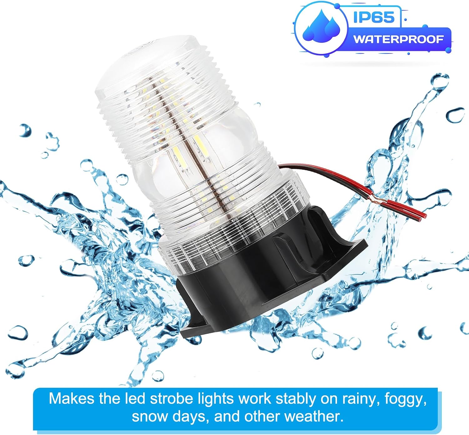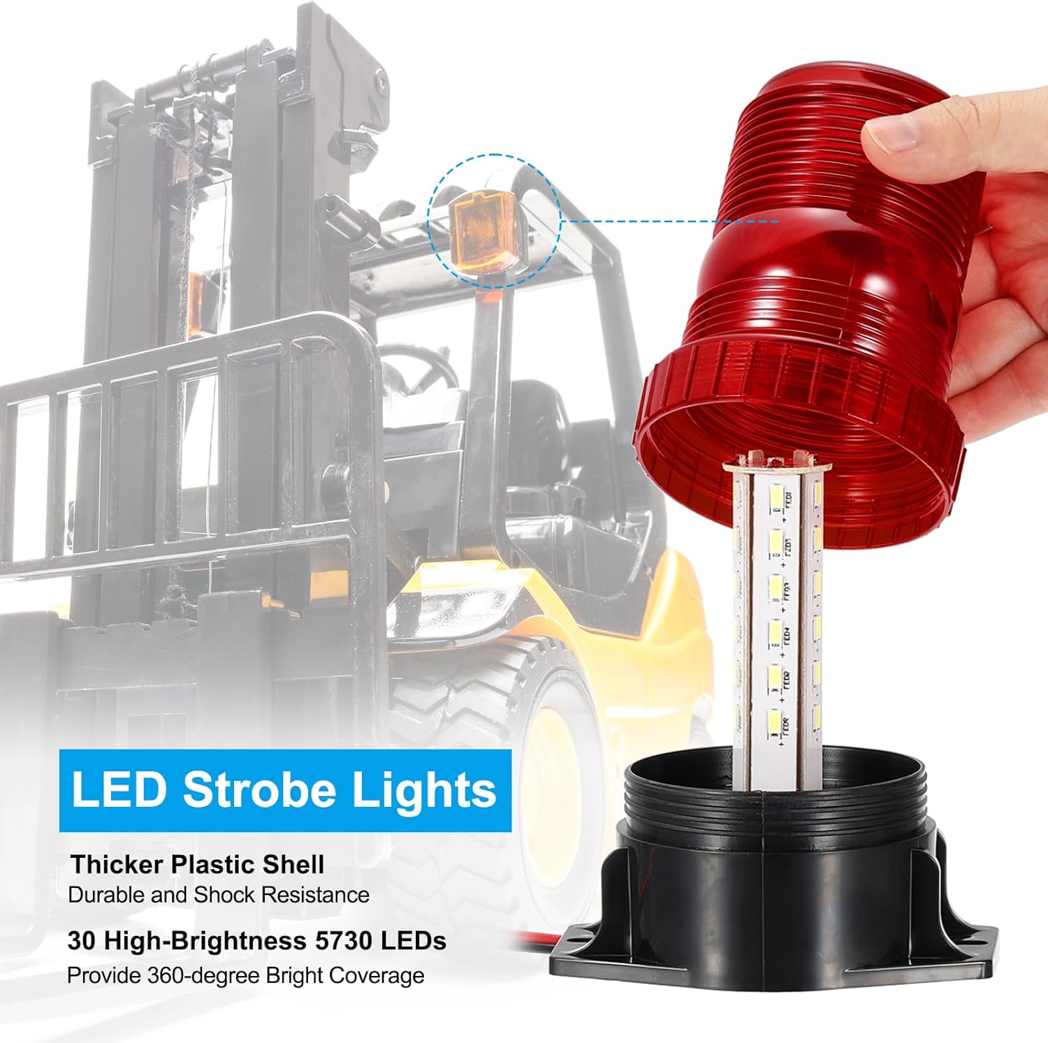 The led strobe light attracts attention with its intense brightness and illumination. It serves as a warning flashing light on rainy, foggy, snow days, and other weather, conditions, improving drive security. Suitable for forklifts, golf carts, construction vehicle, service vehicle, golf carts, UTV vehicle, and other needs.SpecificationMaterial: PlasticFlash Color: WhiteSize: 9.8 x 5.8 x 13.3cm/ 3.86 x 2.29 x 5.24inch (LxWxH)Voltage: 10-80VPackage List: 2 x LED Strobe LightsAdvantageMade of sturdy plastic shell, thicker than ordinary led strobe lights, with shock resistance. Adopt 30 high-brightness 5730 LEDs to provide 360-degree bright coverage, which emits attention-grabbing light even in low-visibility areas. IP65 waterproof level makes it work stably on rainy, foggy, snow days, and other weather.InstructionMagnets make the led strobe lights and can be adsorbed directly on the metal top of any vehicle to fix stably, easy to install and remove. It can also be fixed and installed with screws.NOTEPlease note that this led strobe light is a wired design.