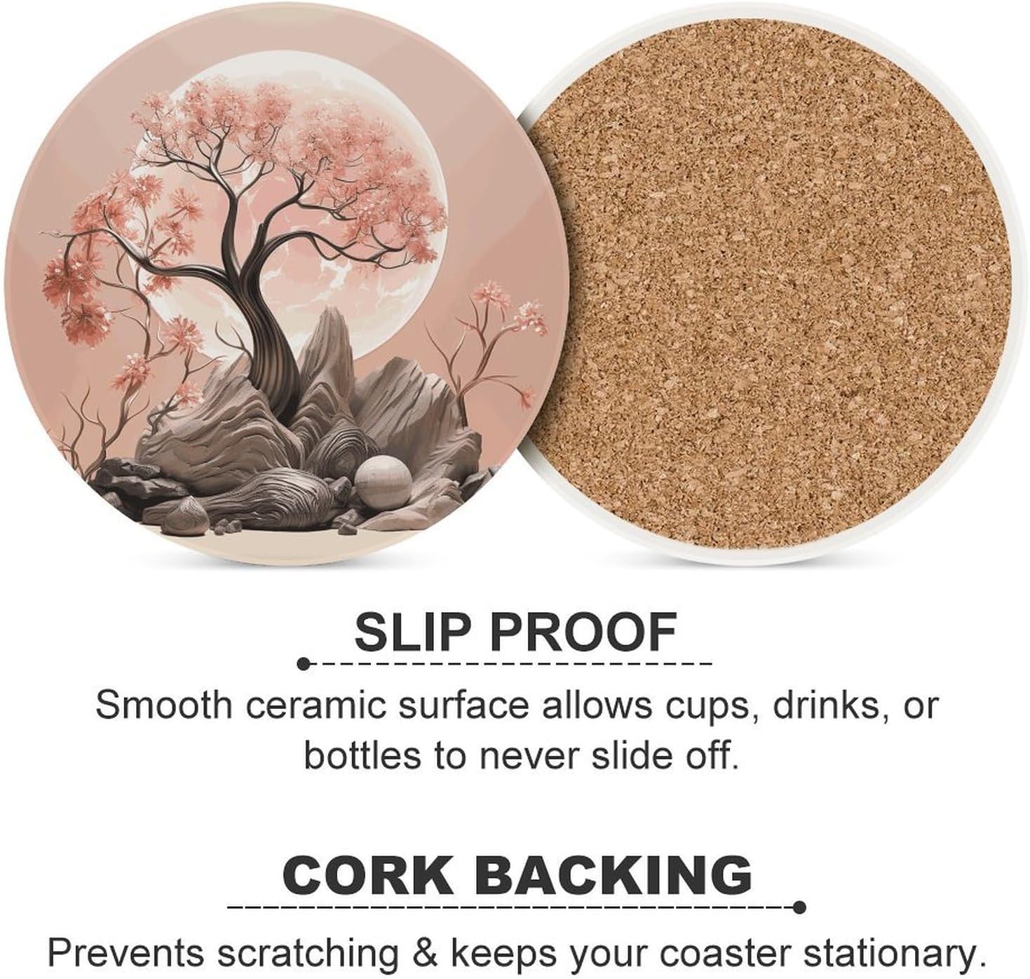 Transform your everyday drinkware experience with our Personality Round Mug Mat set, designed to blend functionality with eye-catching style. Whether you're sipping morning coffee, afternoon tea, or a relaxing evening drink, these Drink Coasters for Drinks offer the perfect balance of protection and aesthetics. The ceramic surface handles hot and cold beverages alike, while the cork backing ensures your favorite tables and countertops stay free from scratches, rings, and moisture. Available in 4PCS or 6PCS packs, these coasters are tailored to fit your daily use, whether for personal use or entertaining guests.Say goodbye to messy spills and slippery cups with our Waterproof Coasters and Anti-slip Drink Cup Mat combination. The smooth ceramic top is not only easy to wipe clean but also resists water absorption, ensuring spills don’t leave lasting marks. At 4.1 inches in diameter, each Round Ceramic Drink Coaster is sized to fit most standard mugs, glasses, and cups, making it a versatile addition to any home or office. Whether you're hosting a casual gathering or setting up a cozy workspace, these coasters keep your surfaces protected while adding a subtle, stylish touch to your decor.Elevate your space with our Fashion Coasters that double as charming coffee table decor. These Cute Drink Coasters feature a sleek round design that complements any interior style,Perfect for your kitchen, living room, bedroom, office, or bar, they make a thoughtful gift for friends, family, or colleagues who appreciate both practicality and style. Don’t settle for basic coasters—upgrade to our Heat Insulation Round Cup Mat set and enjoy a cleaner, more organized, and aesthetically pleasing environment with every sip.