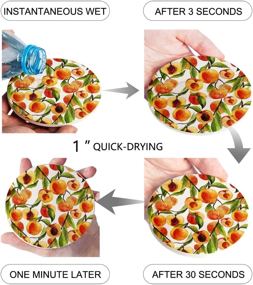 Peaches Round Coaster Coffee Table Mats Kitchen Accessories Absorbent Ceramic Coasters