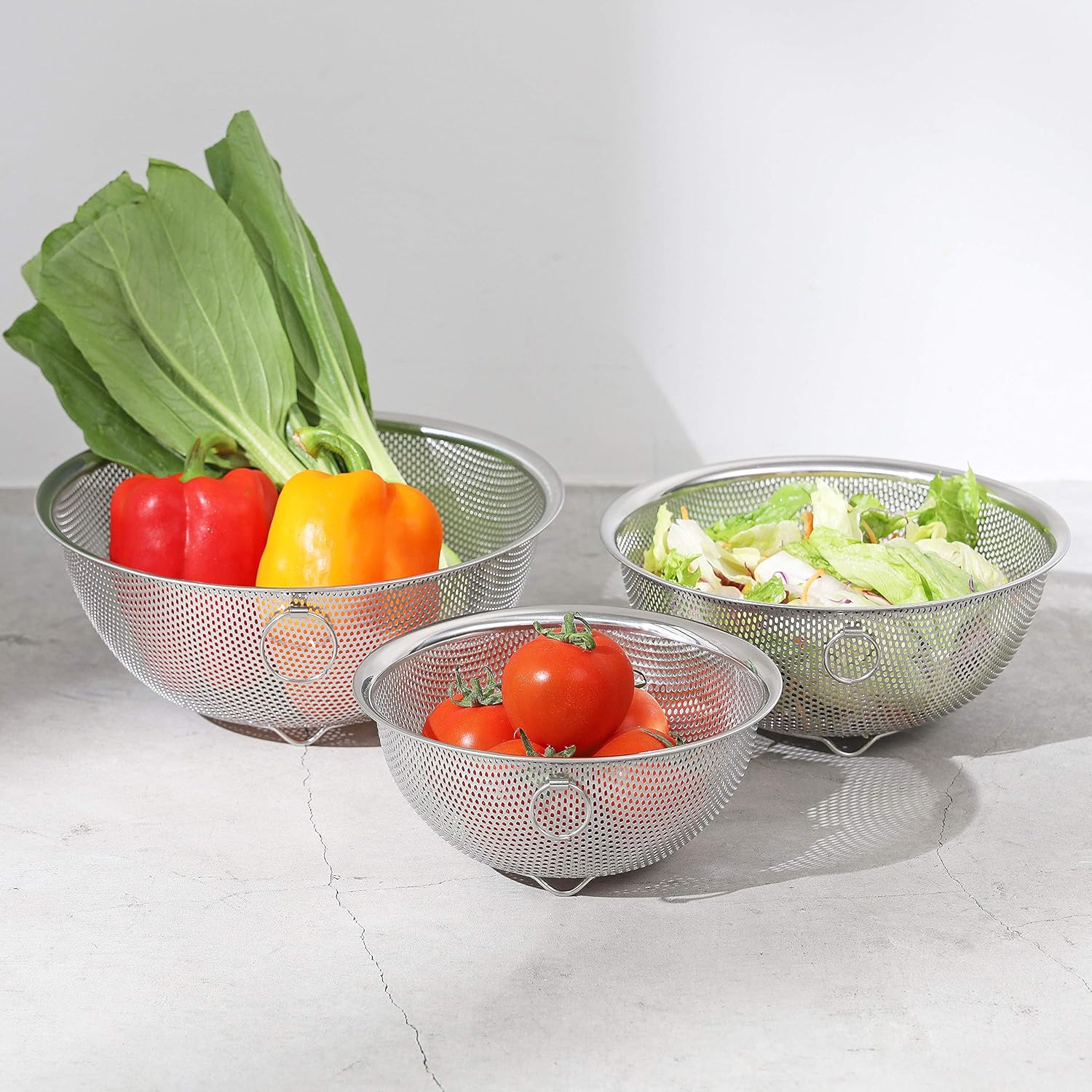 Product Size (Approx.): 5.9 inches (15 cm) / Outer Diameter 6.5 inches (16.5 cm) x Height 3.5 inches (8.5 cm) / 7.1 inches (18 cm) / Outer Diameter 7.7 inches (19.5 cm) x Height 3.9 inches (21 cm) / Outer Product Weight: Approx. 5.9 inches (15 cm) / 0.3 lbs (0.1 kg), 7.1 inches (18 cm) / 0.5 lbs (0.13 kg), 8.3 inches (21 cm) / Colander Depth: Approx. 5.9 inches (15 cm), 2.6 inches (6.5 cm), 7.1 inches (18 cm), 3.0 inches (7.5 cm), 8.3 inches (21 Material: Stainless steel. Country of Origin: China. Punched for good drainage and no deformation Comes with feet to keep it clean and hygienic even when placed in the sink. We especially focus on stacking, and we pursue the storage capacity that many people feel frustrated. Easy to clean The seamless edges make it beautiful and easy to clean. Rust resistant and durable stainless steel for hygienic use. Dishwasher and dry safe Note: Please note that we will not be responsible for any damages, damages or accidents arising from rental or auction or sale or used sales due to transfer.