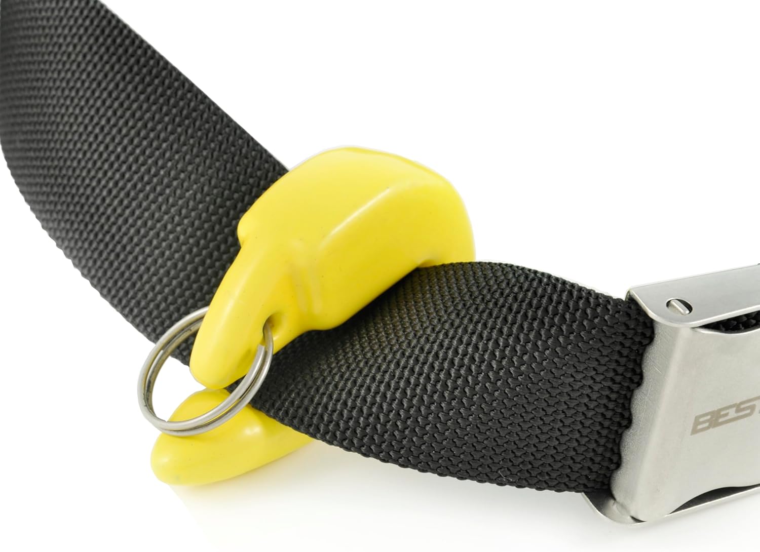 For use with buoys and decompression pedagns. Practical stainless steel ring for quick attachment with ropes or carabiners. Its special shape makes it easy and quick to attach to the belt and release. 600g lead coated with yellow PVC