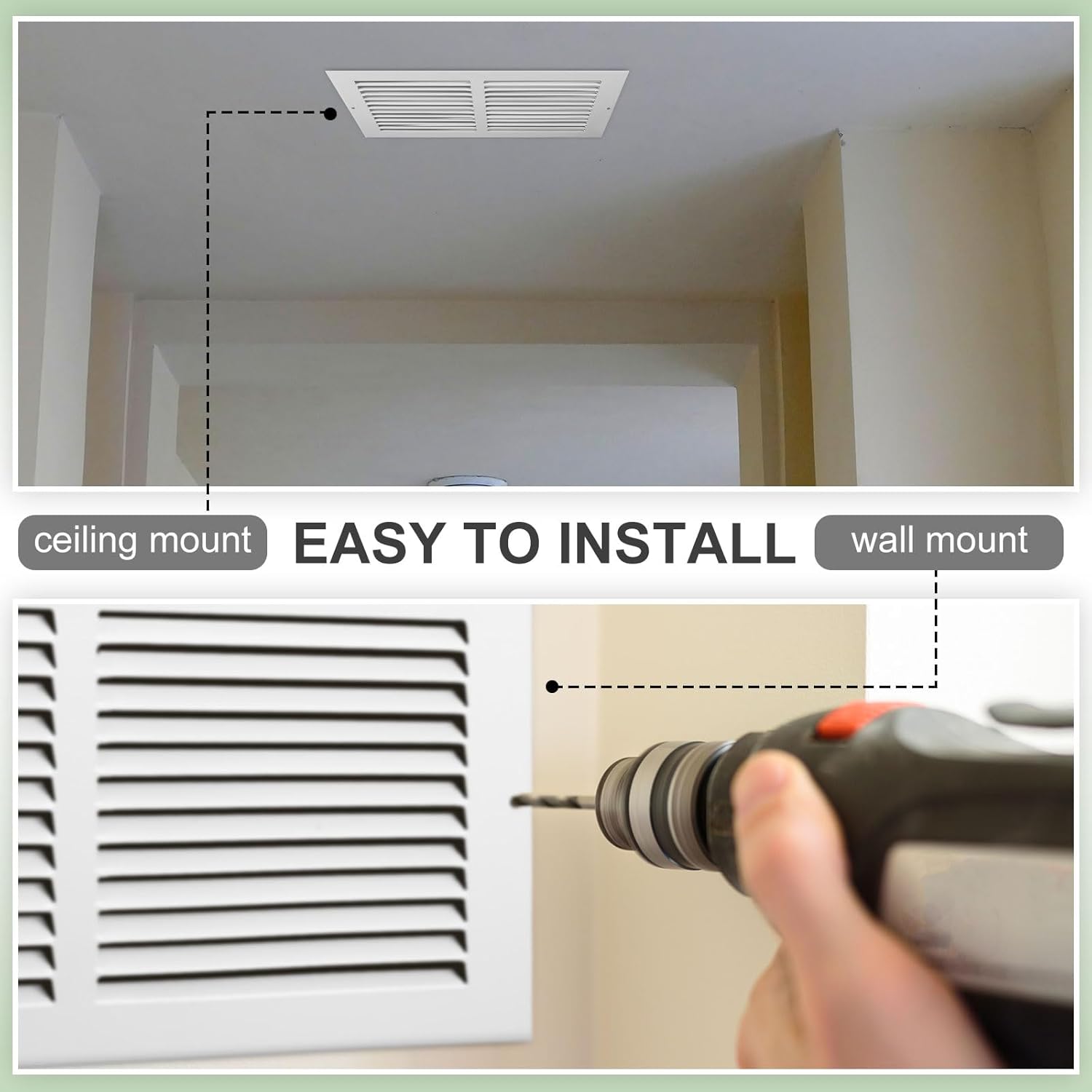 Features: Ideal decoration: Composed of quality metal with powder coated white finish, this vent cover is ideal for sidewall and ceiling mounting, giving the air vent cover more texture, fitting various styles of house decoration. Improve circulation: The air vent cover can accelerate the circulation of air, so that your home can have more fresh air, which can also be good to achieve hot circulation or cold circulation, a practical tool to use. Specifications: Material: metal Color: white Size: duct opening size is about 14 x 6 inches, the outer dimension is about 15.75 x 7.75 inches Package includes: 6 x Air vent covers Notes: Manual measurement, please allow slight errors on size. The color may exist a slight difference due to different screen displays.