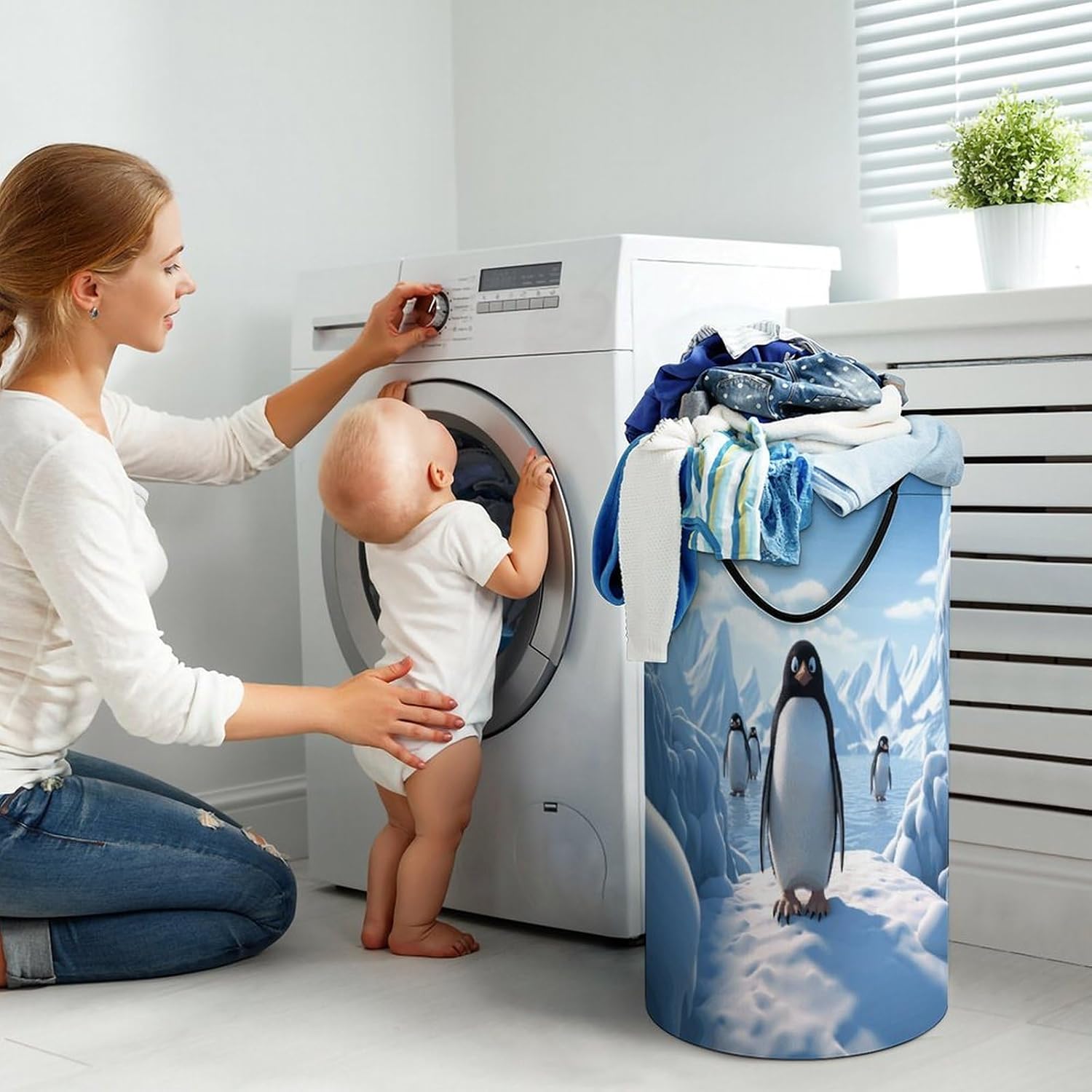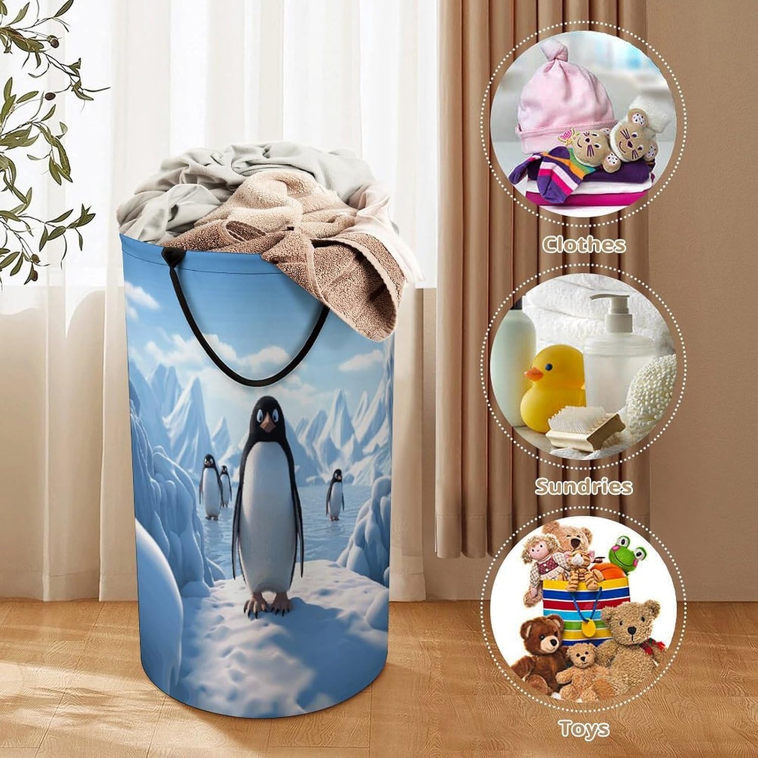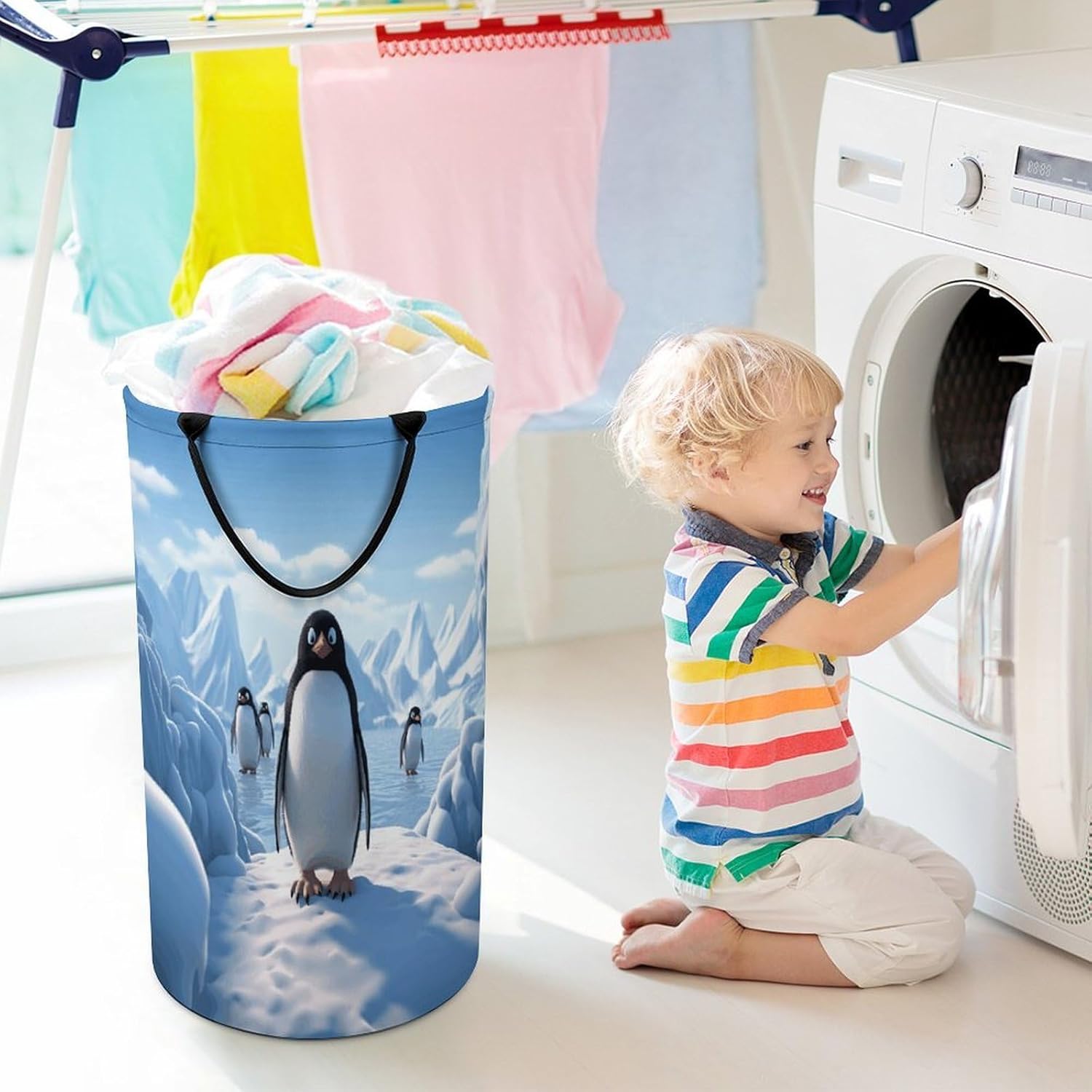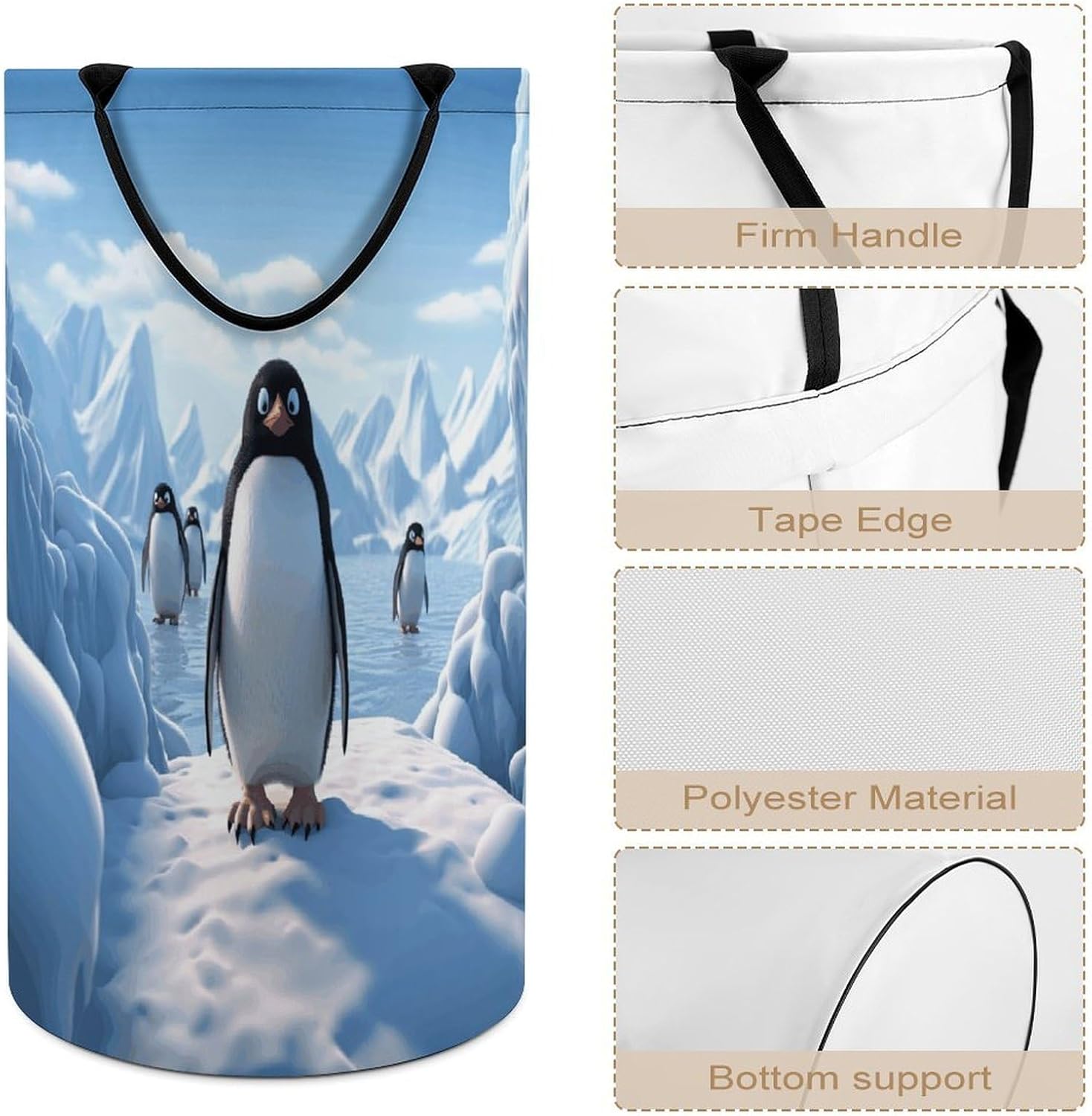Tired of messy piles of dirty clothes cluttering your bedroom, bathroom, or laundry room? Meet your new organizational essential: the Large Collapsible Laundry Hamper, designed to blend functionality, and style seamlessly into your daily life. Whether you're a busy parent, or a frequent traveler, this versatile hamper Dirty clothes hamper clothes hampers for laundry Large Tall Clothes Basket Bin Decor Storage of Dirty Clothes is crafted to simplify your routine and elevate your space.With its generous size, this hamper easily handles a week's worth of laundry for individuals or small families, eliminating the hassle of multiple trips to the washing machine. From bulky sweaters and bed linens to towels and clothes, Removable Laundry Bags Laundry Hamper Bag Large Laundry Basket effortlessly accommodates all types of fabrics. Say goodbye to overflowing baskets and hello to a tidier, more organized home.More than just a Foldable Washing Bin Collapsible Laundry Bag Penguin Antarctica Ice-png laundry basket, this hamper adds a touch of modern elegance to any room. Its neutral, minimalist design complements bedrooms, bathrooms, closets, RVs, campers dorms. Use Waterproof Washing Bin Decorative Tall Hamper Large Storage Basket to store blankets, or seasonal items, its versatility knows no bounds.