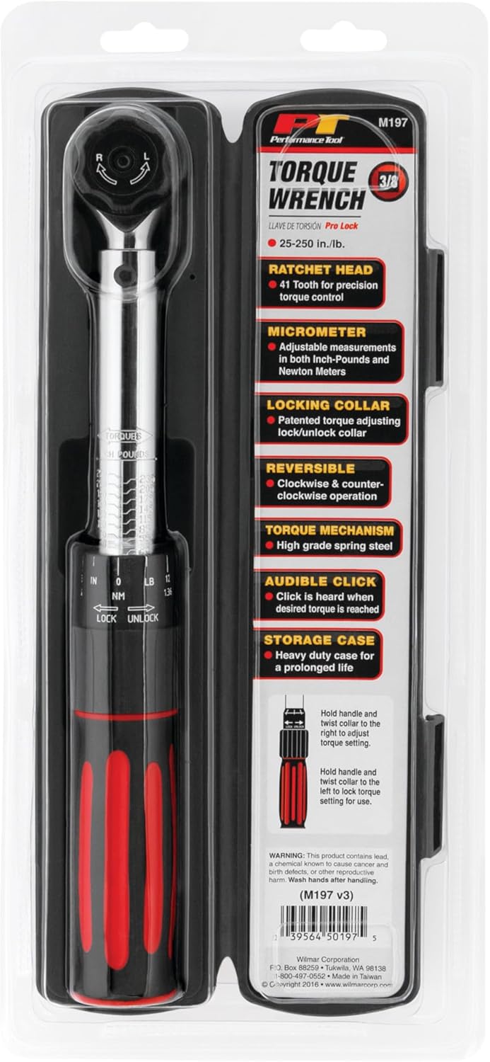 | Included Components | Performance Tool M197 3/8-inch Drive Click Torque Wrench, Black/Red, 30-250 in/lb |