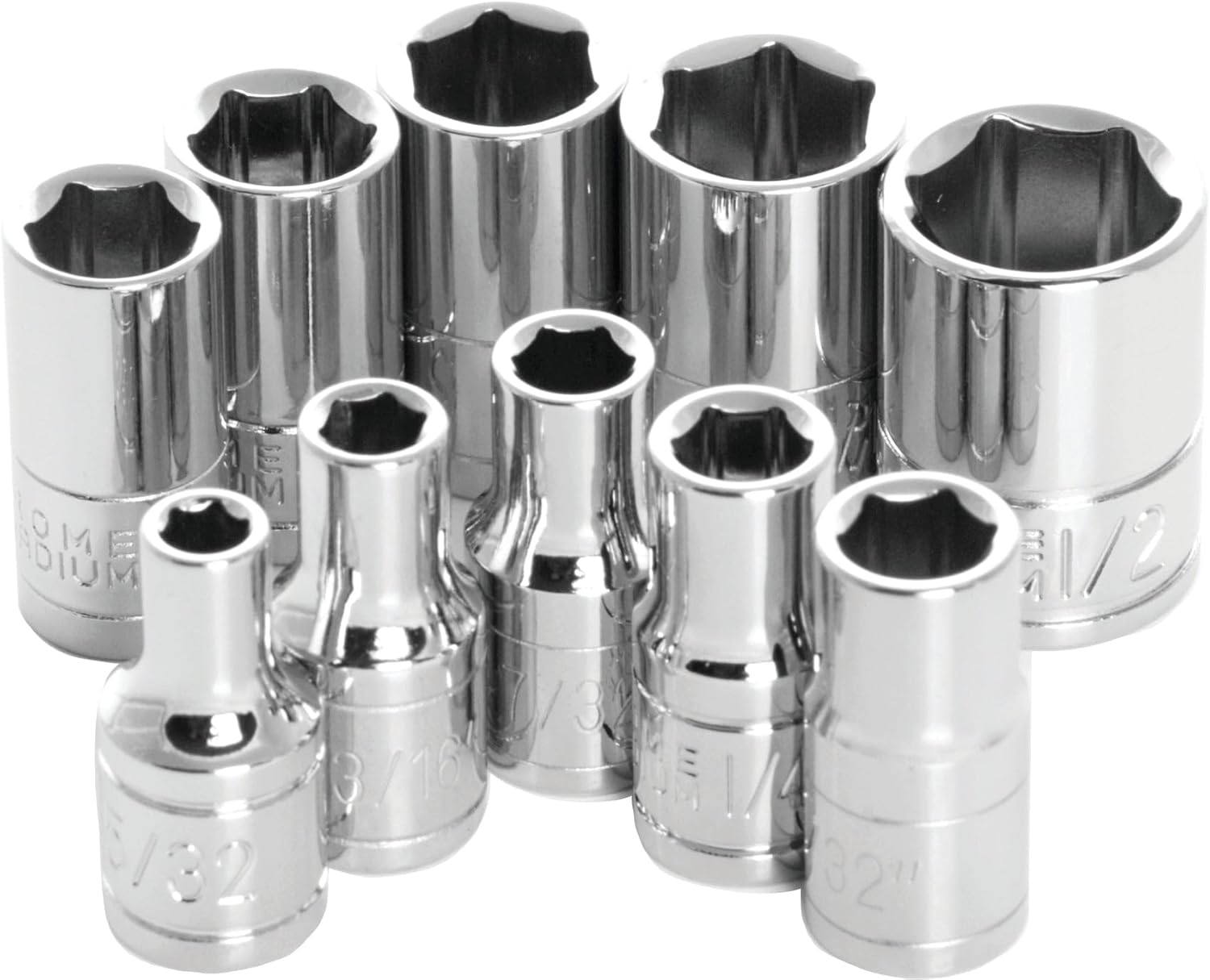 • INCLUDES 1/2, 9/16, 5/8, 11/16, ?, 13/16, 7/8 and 15/16-Inch sockets