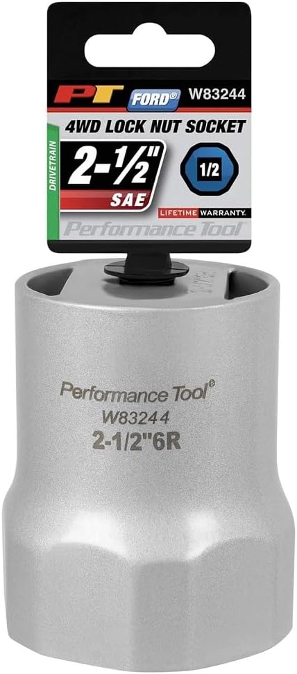 Performance Tool W89314 7-Piece 1/2 In. Drive Wheel Bearing Lock Nut Socket Set contains one each 2 3/8, 2 1/2 inch, and 5mm locknut, one each 2 1/2, 2 3/4, 2 9/16, and 2 3/8 inch rounded lock nut. Replacement parts available.