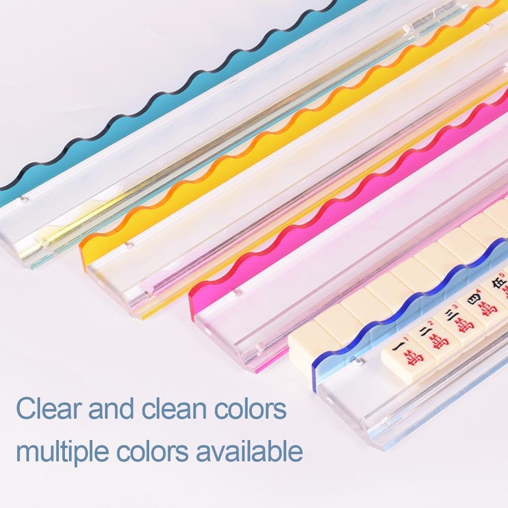 Description1. Optimal Mahjong Play: Elevate your American Mahjong experience with these specially designed tile racks, offering a clear and organized setup for your game. Their precise construction and transparent body with vibrant wavy tops enhance the visual appeal of your mahjong table, making each game more enjoyable and elegant.2. Premium Acrylic Material & Ideal Dimensions: Crafted from high-quality acrylic material, each tile pusher is built to last and provides a smooth, comfortable grip. Measuring approximately 44.7 cm (17.5 inches) in length, 6.5 cm (2.6 inches) in width, and 1.9 cm (0.75 inches) in height, these racks are perfectly sized to hold a standard set of American Mahjong tiles and chips.3. Vibrant & Clear Design: Showcasing a beautiful transparent body accented with a selection of vivid wavy top edges, including Rose Red, Yellow, Blue, and Green, these racks add a stylish of color to your mahjong set. The crystal-clear design maintains a clean aesthetic while allowing the intricate beauty of your tiles to shine through, offering multi-color options to suit your preference.4. Multi-functional Use: Beyond simply holding your mahjong tiles, these versatile racks also feature a convenient ledge to secure scoring chips or additional game pieces. Their ergonomic design also allows them to function efficiently as pushers, making tile management effortless and enhancing the flow of your game sessions.Package listAs shown in the pictureNotes:1. Due to various factors such as monitor brightness and light brightness, the actual color of the product may be slightly different from the picture displayed on the website.2. Please allow for slight manual measurement bias in the data.